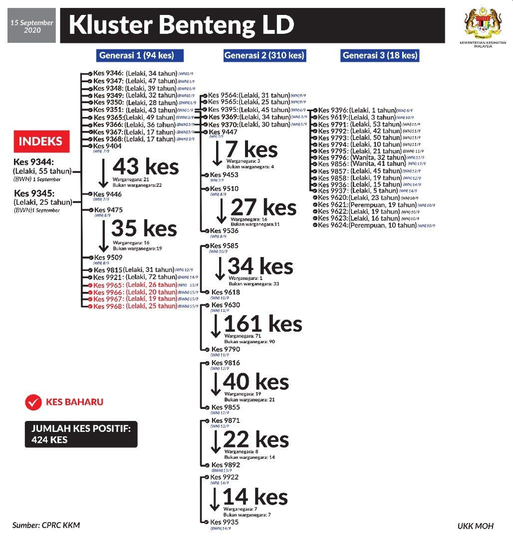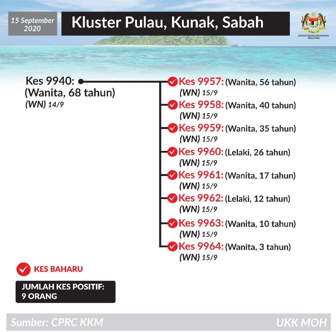 According to the Ministry, a total of 128 individuals have been screened from the Pulau cluster at Kunak, Sabah. A total of 9 individuals are found positive and 101 are still waiting for results.