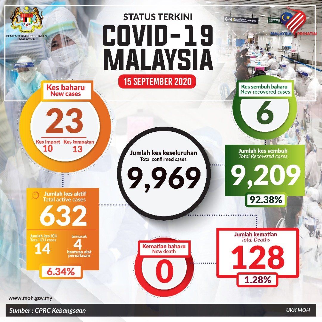 Malaysia has recorded 23 new COVID-19 cases today which brings the total number of infections to 9,969. Fortunately, there are no new deaths recorded and the death toll remains at 128.