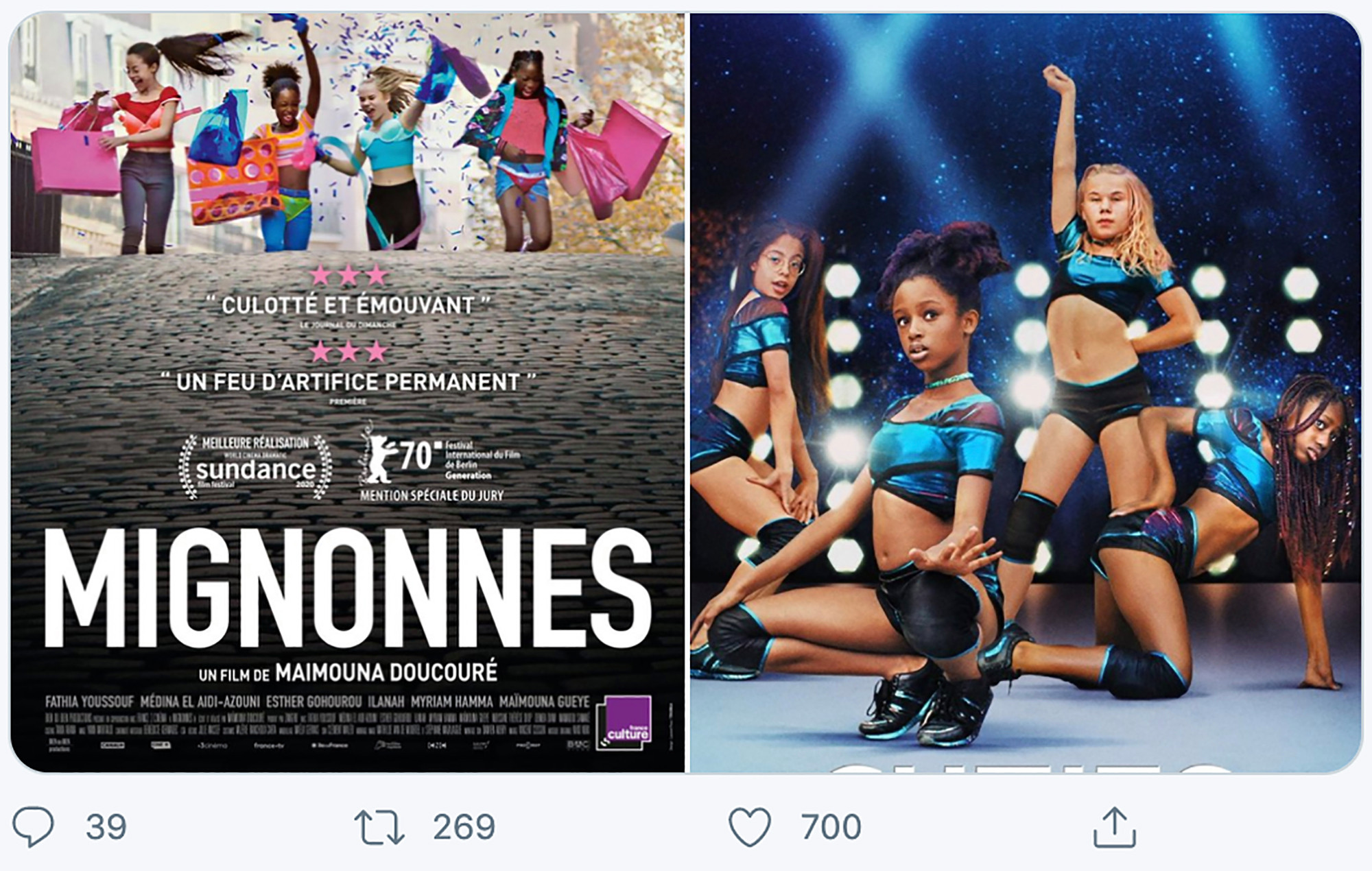 Even so, “Cuties” premiered in the 2020 Sundance Film Festival on 23 January 2020, where Doucouré won the Directing Award. Monica Castillo of RogerEbert.com gave the film four out of four stars, stating that the movie is “a difficult and challenging film, pushing the idea of ‘depiction does not equal endorsement’ to its limit.”