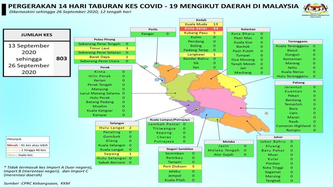 The Ministry of Health has announced that all individuals that arrive from Sabah must undergo mandatory COVID-19 screening and self-quarantine starting tomorrow, 27th September until 10th October 2020. This is due to increasing number of new local infections across multiple states from individuals with a past travel history to Sabah.
