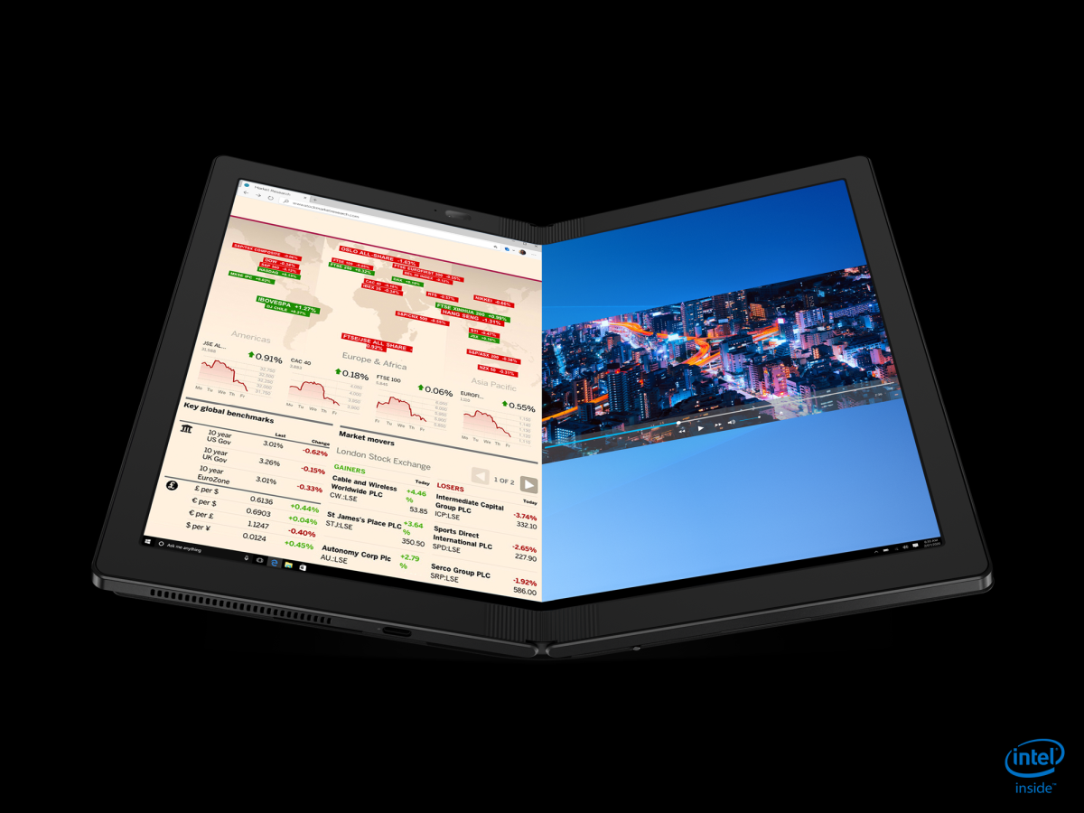 Where do we start? Lenovo calls this the world’s first folding PC, with a folding 13.3″ OLED display pushing a resolution of 2048×1536 pixels. When folded at an angle, you get two 9.6″ screens—use it as a laptop, a tablet, a book, or a display, Lenovo says.