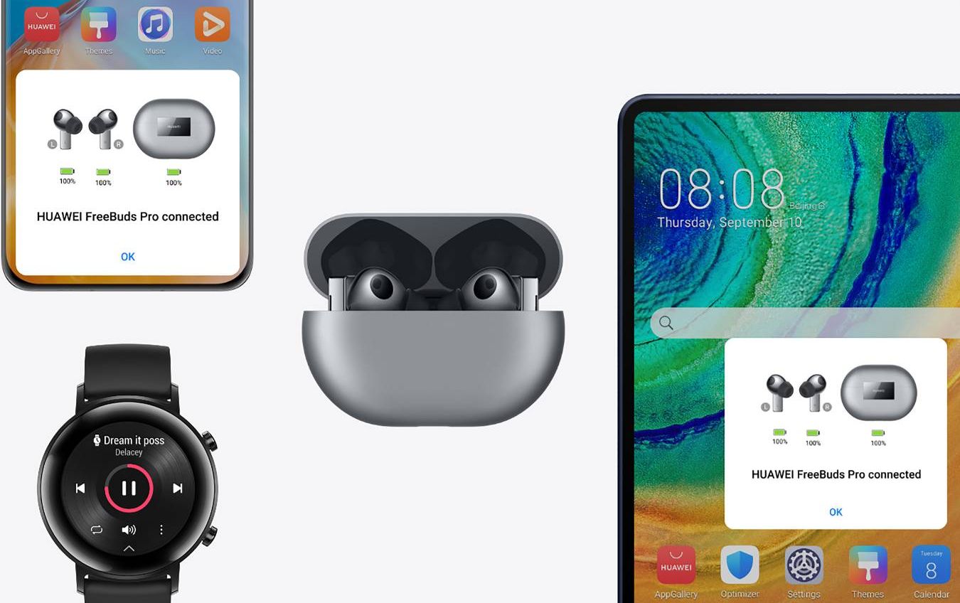 The FreeBuds Pro looks heavily inspired by Apple’s AirPods Pro but it comes with a squarish stem. The new headphones boasts an intelligent dynamic ANC which can switch its noise cancellation mode depending on your ambient situation. For clearer voice calls, it utilises 3 microphones and a bone voice sensor to reduce unwanted background noise.
