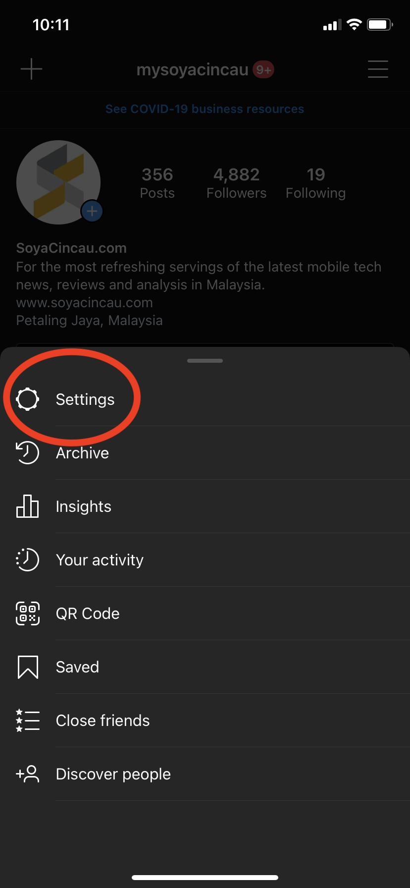 - Visit your Instagram profile and press on the three lined icon on the top right side