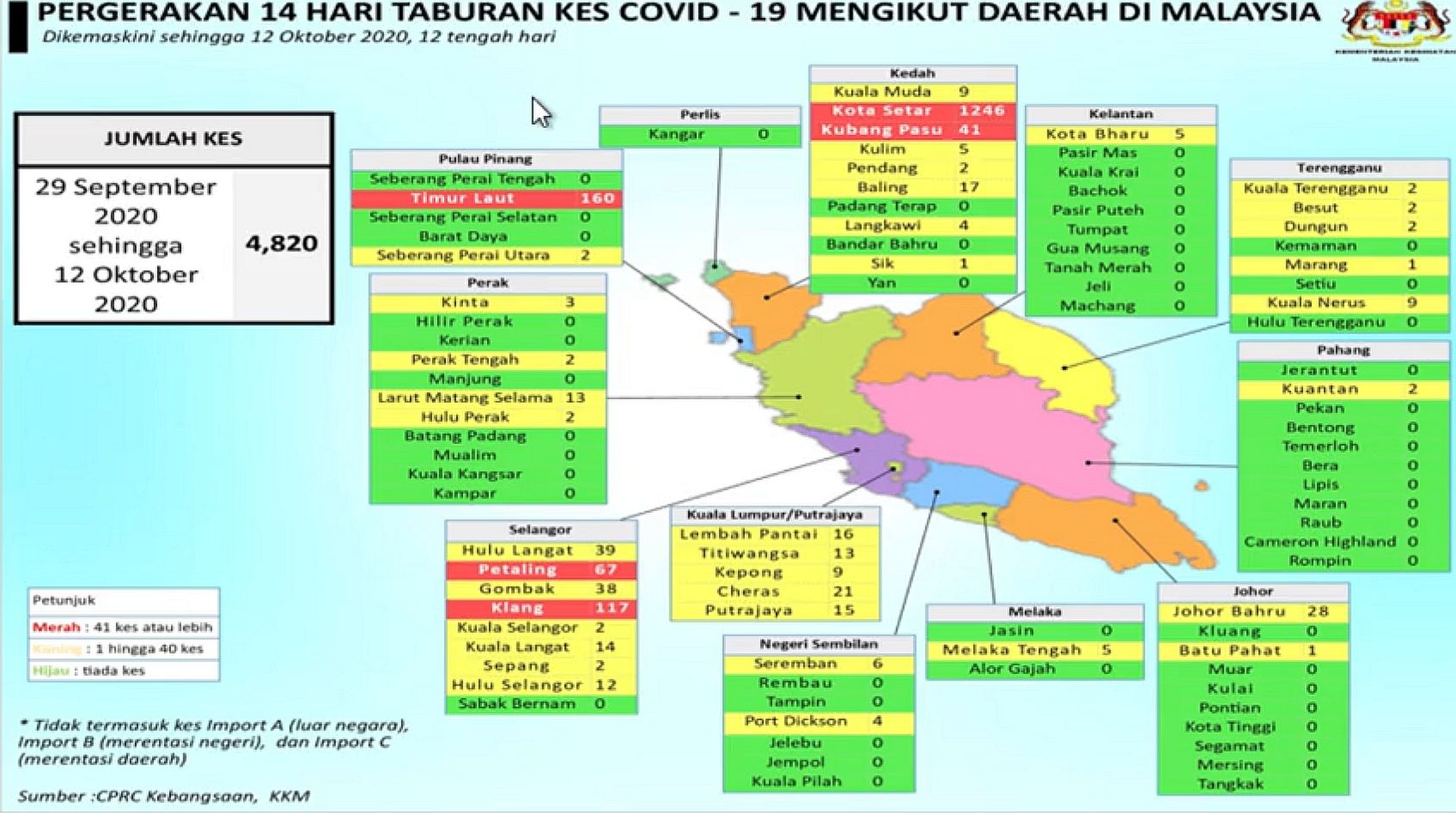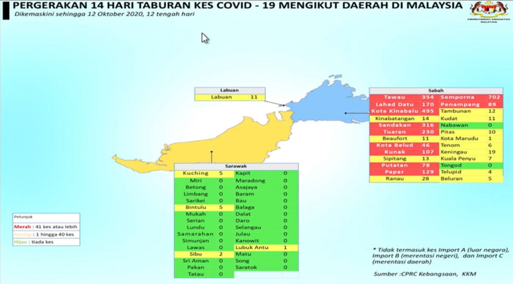 As announced by the National Security Council, CMCO will be declared on the entire state of Sabah starting tomorrow, 13th October 2020. Meanwhile, CMCO will be imposed in Selangor, Kuala Lumpur and Putrajaya from 14th October 2020.
