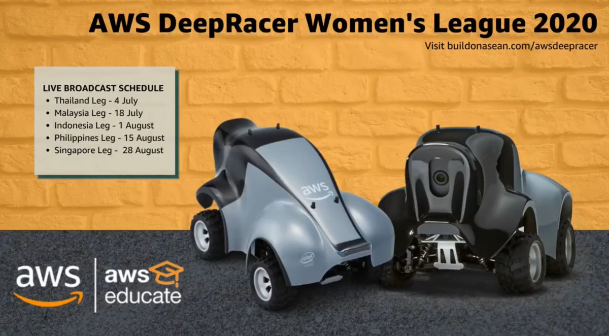 The AWS DeepRacer Women’s League—as suggested by its name—was a race between autonomous vehicles on simulated tracks. The AWS DeepRacer vehicles that were used are cloud-based, 1/18th fully autonomous race cars built using Amazon Sagemaker, a managed service that allows for building, modelling, and implementation of models. RL (reinforced learning) techniques are used to program the cars, with participants competing in virtual races taking place in Thailand, Malaysia, Indonesia, the Philippines, and Singapore.