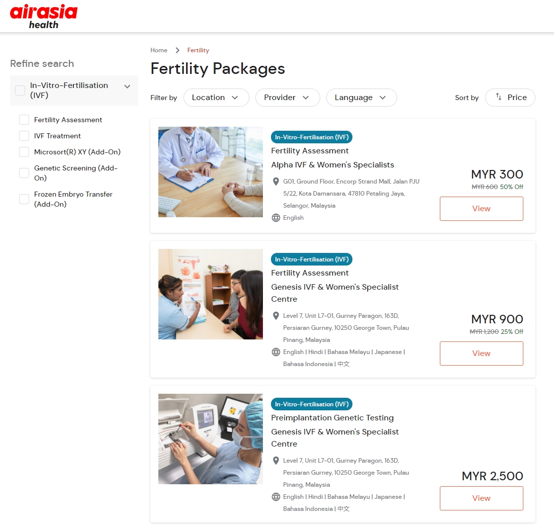 According to AirAsia, they have partnered with reputable medical providers and hospitals to provide a variety of health and medical service packages. This includes professional consultations and booking treatments for health screenings, aesthetics, wellness and fertility sessions. AirAsia Health also provides on-ground logistics including flights, accommodation and support services such as medical visa and medical companion in a single platform.