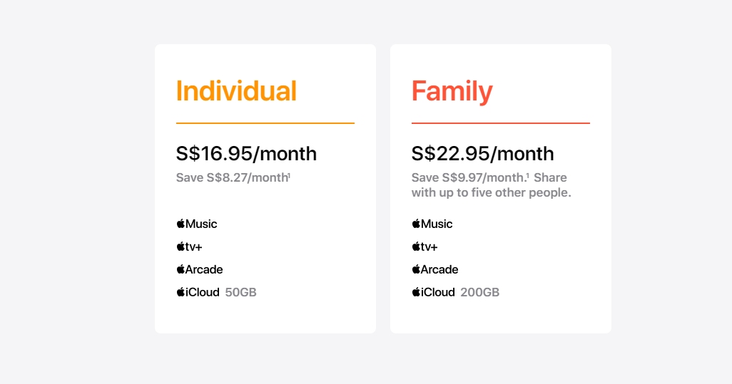Interestingly, it appears that the Apple One subscription price in Malaysia is one of the cheapest in the world. In Singapore, the Individual plan costs SGD 16.95/month (about RM51.50) while the Family option costs SGD 22.95/month (RM69.73).