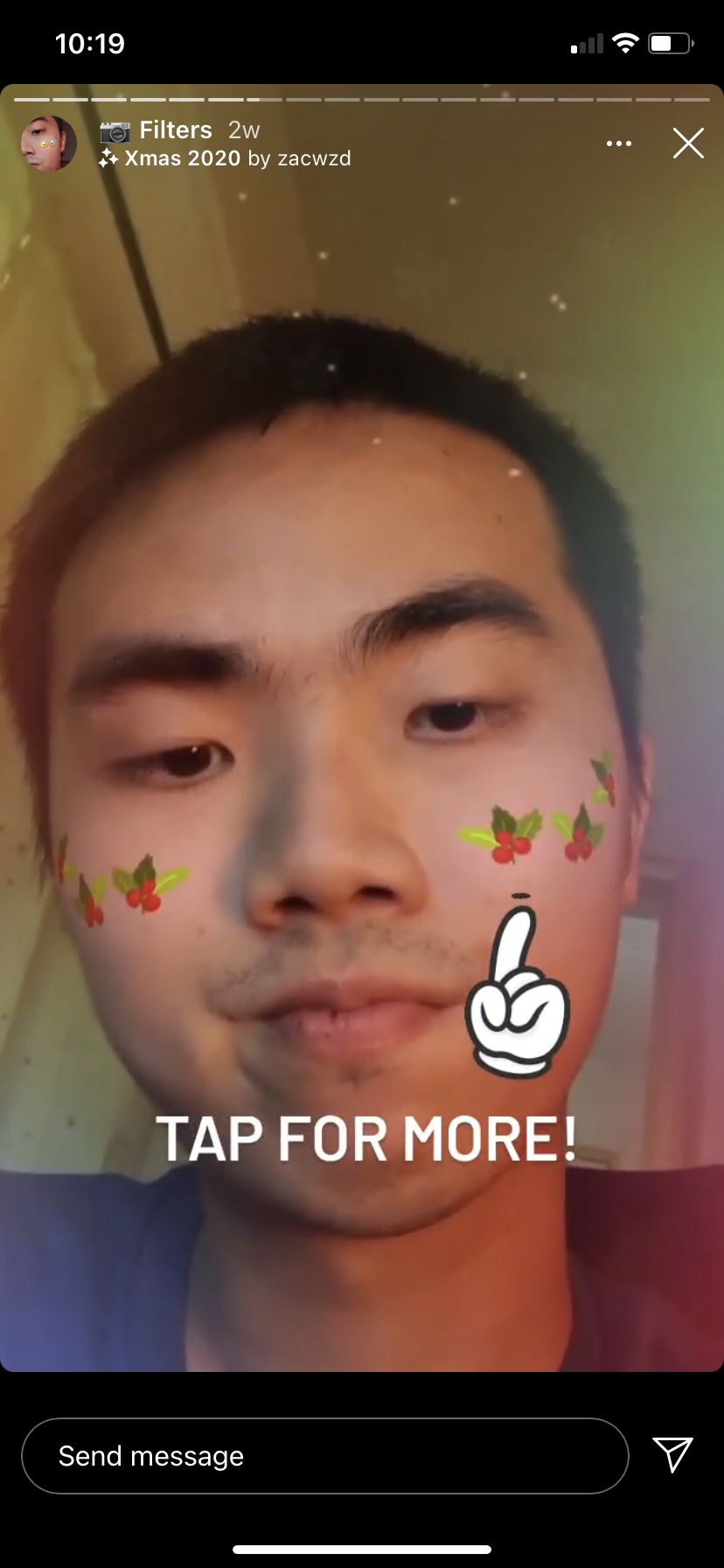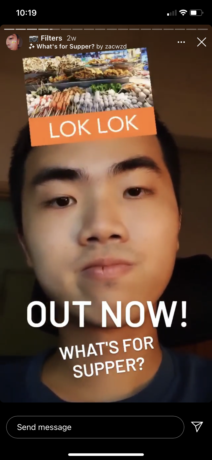 @zacwzd is no newbie to making pretty creative Instagram filters. He’s also created a cute Christmas themed filter, as well as a “What’s for supper?” filter. The latter is actually a pretty great idea, especially if you’re the type to not know what to eat for supper.