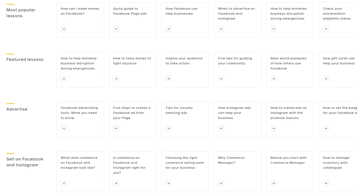 A variety of topics—spanning across various FB apps and services proficiencies—are available, including creative strategy, digital marketing, and media planning. He also referred to self-styled “gurus” of Facebook ads, warning that that they may not be up to date with the latest algorithms and tools that the continually-evolving platform (and Instagram/WhatsApp) may have.