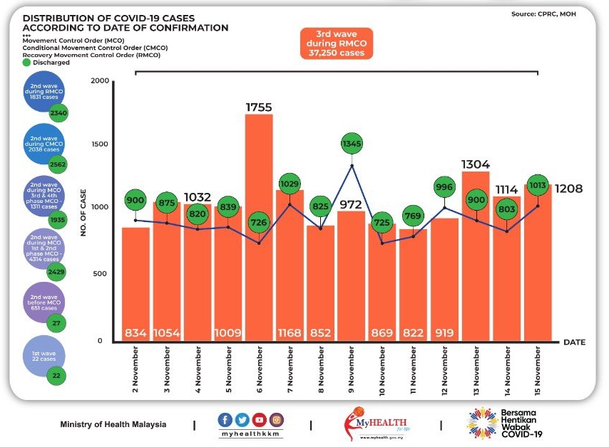 Malaysia has recorded 1,208 new COVID-19 cases today which brings the total number of infections to 47,417. There are 3 new deaths reported in Sabah and the overall death toll is now 309.