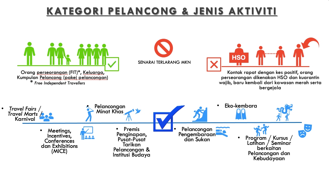 The statement showed that confirmation of tourists from the green zone must show a declaration of the level of health risk status through MySejahtera profile application, proof of booking accommodation, tickets, travel itinerary or any other document determined by police.