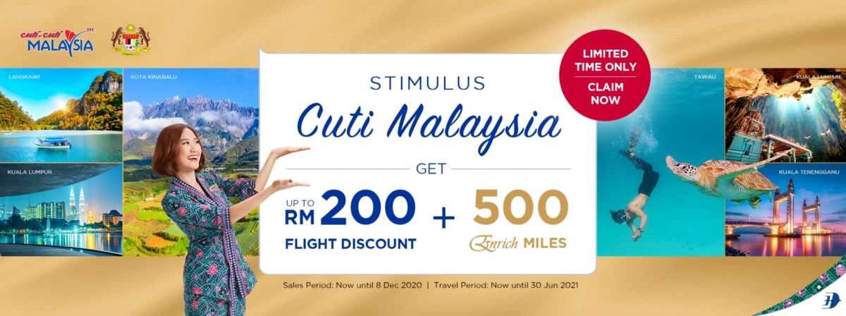 Meanwhile, Malaysia Airlines is also offering domestic flight discounts as part of the Stimulus Cuti Malaysia campaign. Until the 8th of December 2020, eligible Malaysians with a valid NRIC will be able to claim a discount of RM50 per leg—up to RM200 per passenger—for domestic flight purchases in Malaysia.