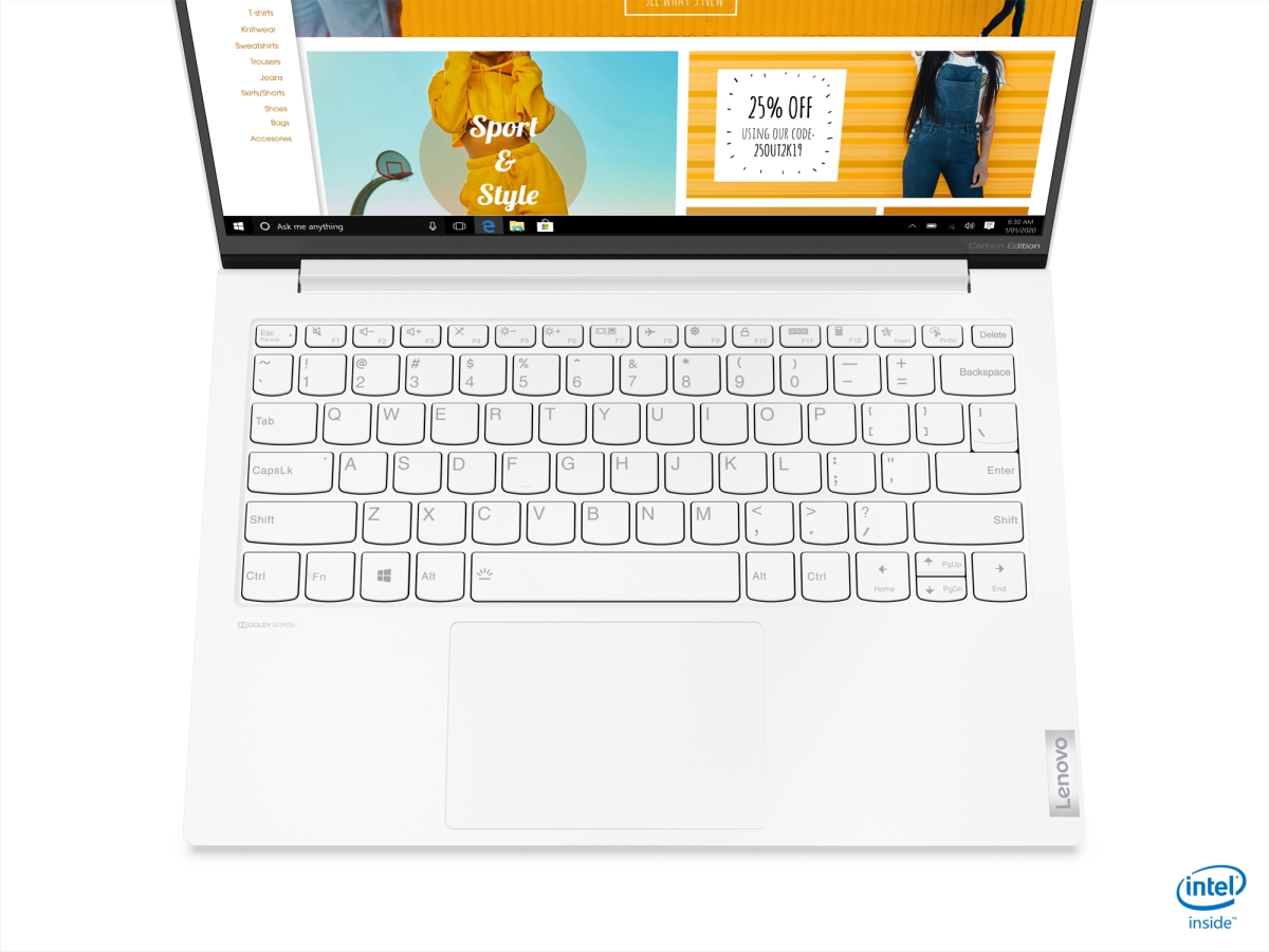 As mentioned earlier, the Yoga Slim 7i Carbon weighs in with at 996g, while you’re also getting a 13.3″ display pushing a QHD resolution of 2560×1600 pixels. Additionally, 100% of the sRGB colour gamut is supported by the screen, along with Dolby Vision and TUV Rheinland Eye Comfort. You should also be getting a near-all-screen experience here, with a 91 percent screen-to-body at a 16:10 aspect ratio.