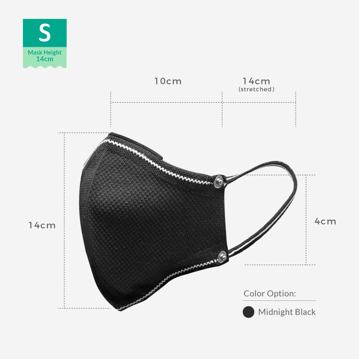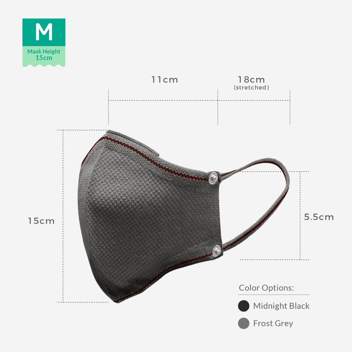 It comes with a replaceable filter that uses silver nanotechnology and recycled coffee grounds to protect the wearer from bacteria, fungi, and virus particles.
