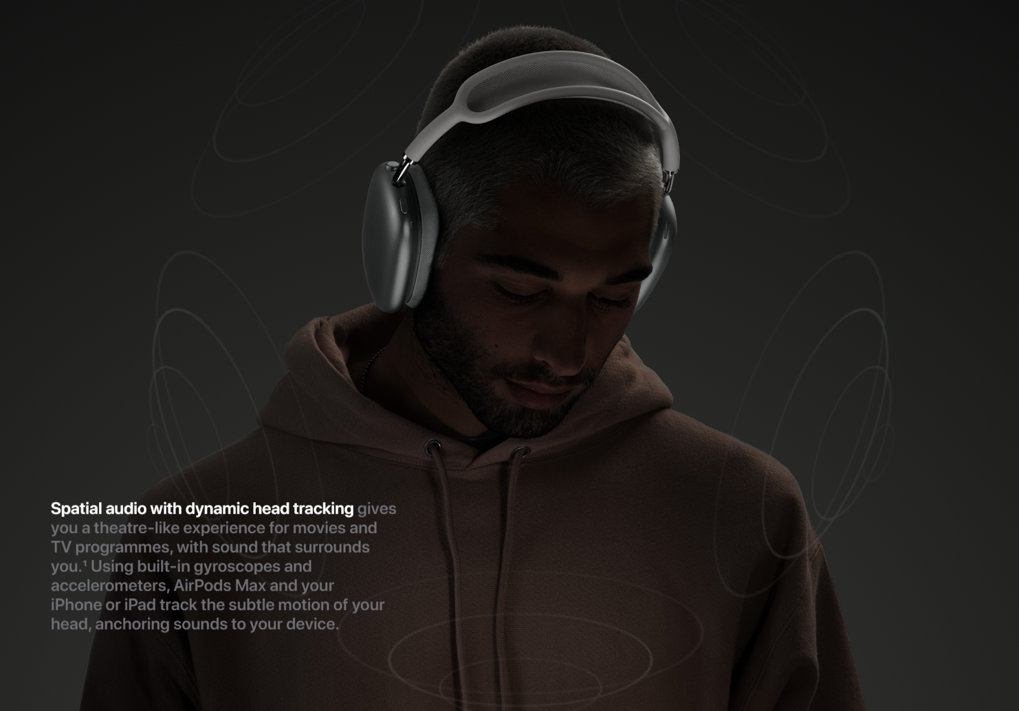 For a more immersive experience, it also features Spatial Audio that allows you to better experience 5.1, 7.1 and Dolby Atmos content with head tracking. The Max uses the built-in gyroscope and accelerometer in the AirPods Max along with your device so that it can remap the sound field based on your head movements.
