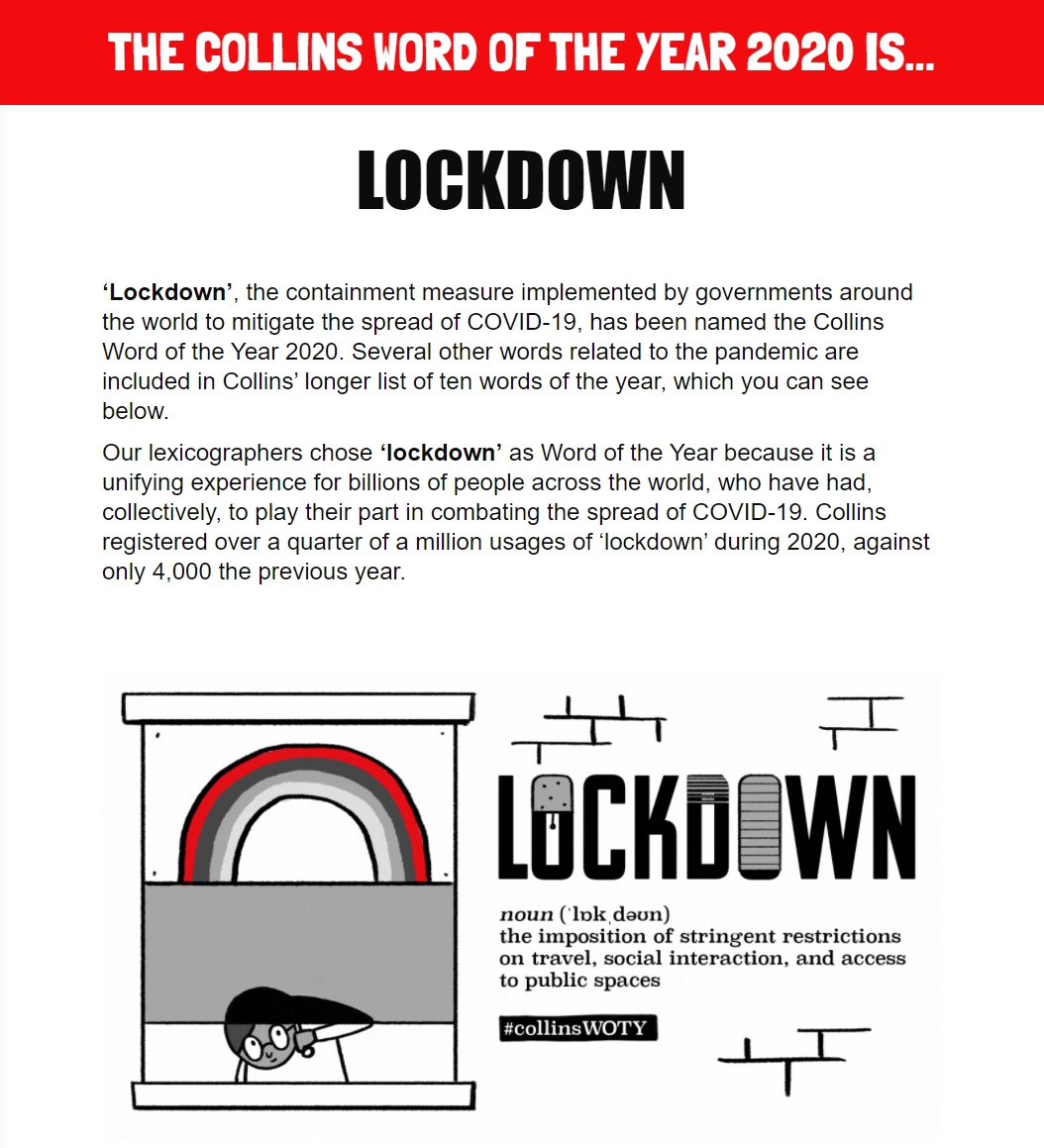 “With many countries entering a second lockdown, it is not a word of the year to celebrate, she noted, “But it is, perhaps, one that sums up the year for most of the world.”