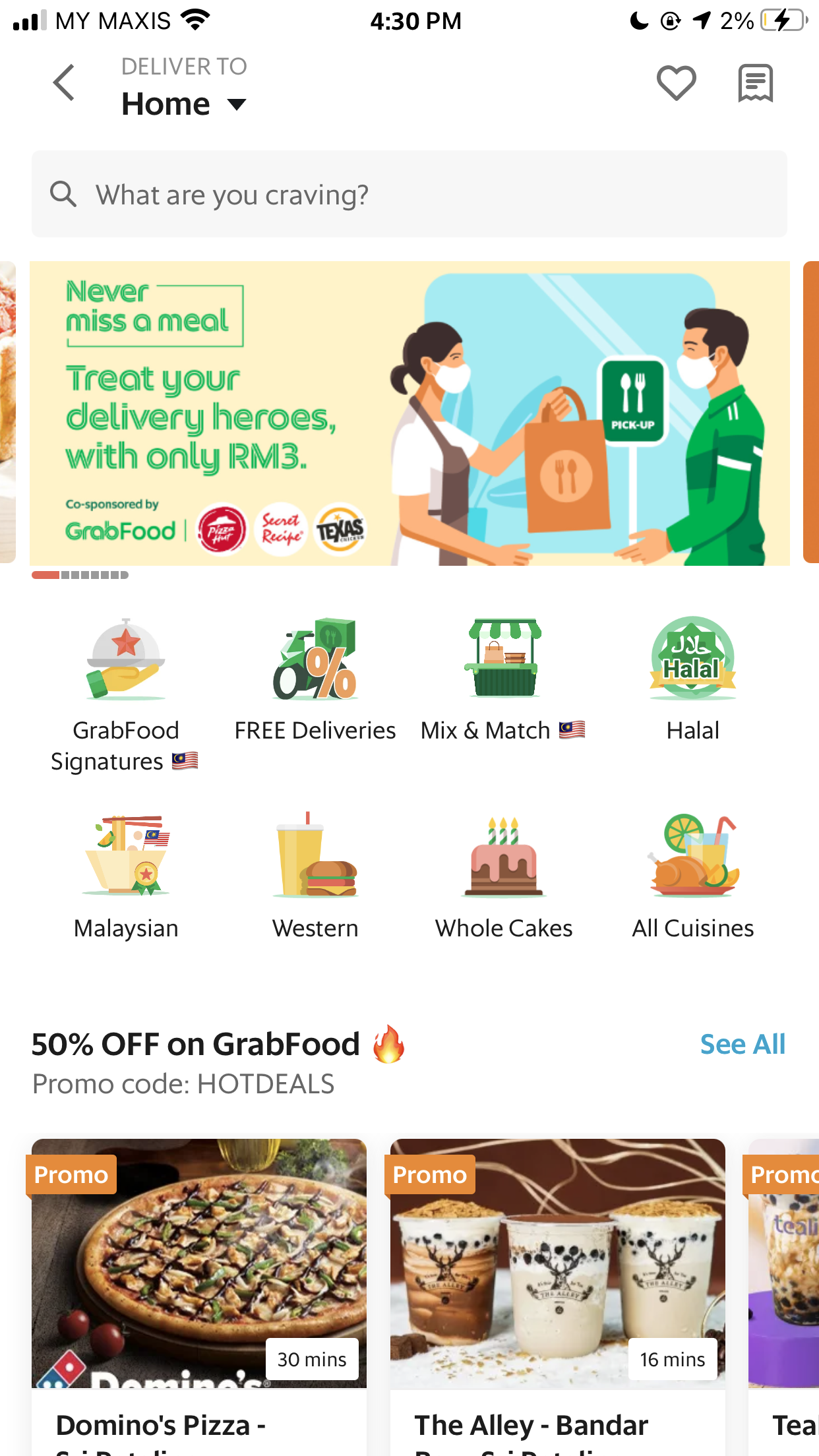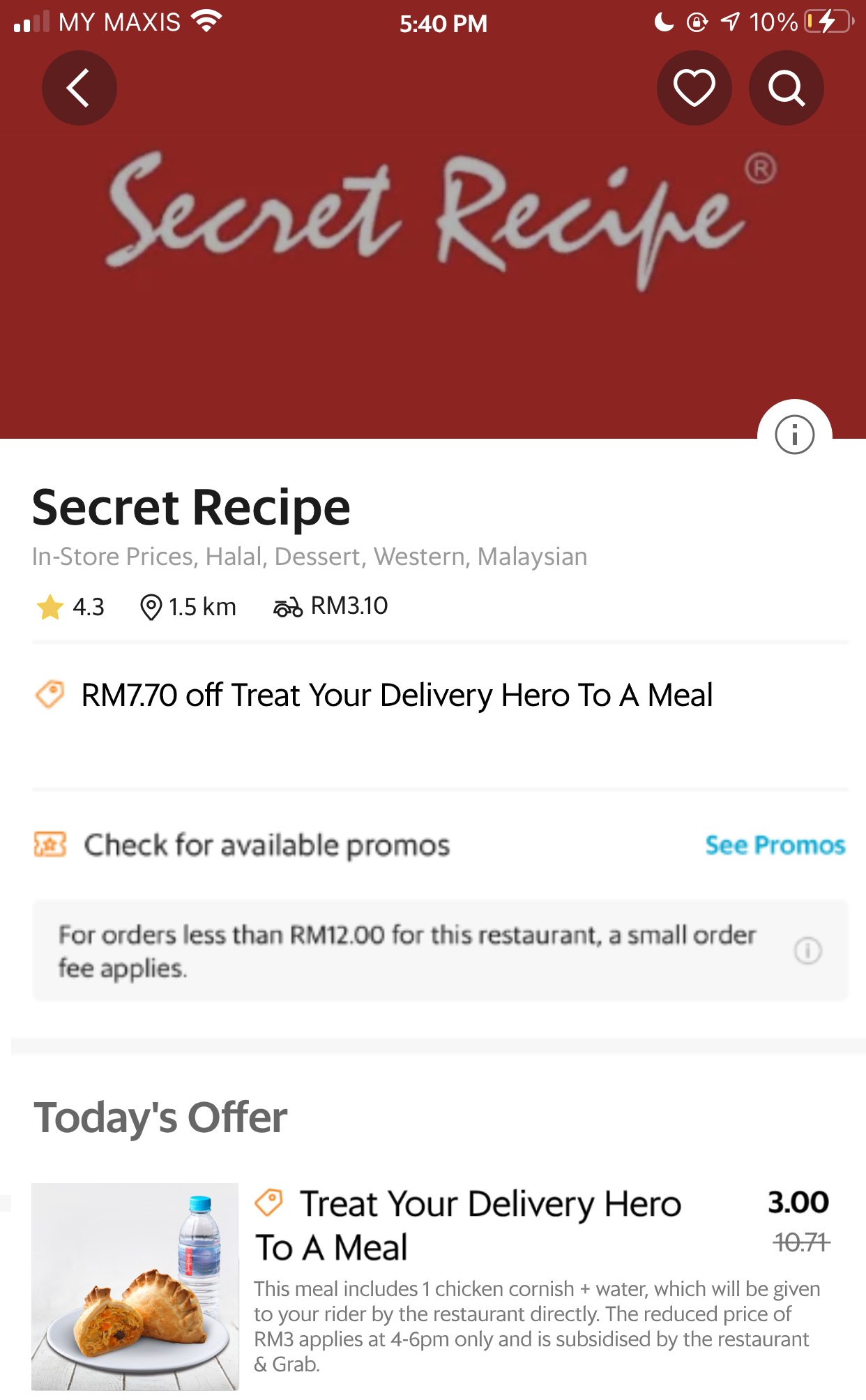 - Tap on the special RM3 meal called “Treat your delivery hero to a meal” and add it to your order. This meal is co-sponsored by Grab and the restaurant.