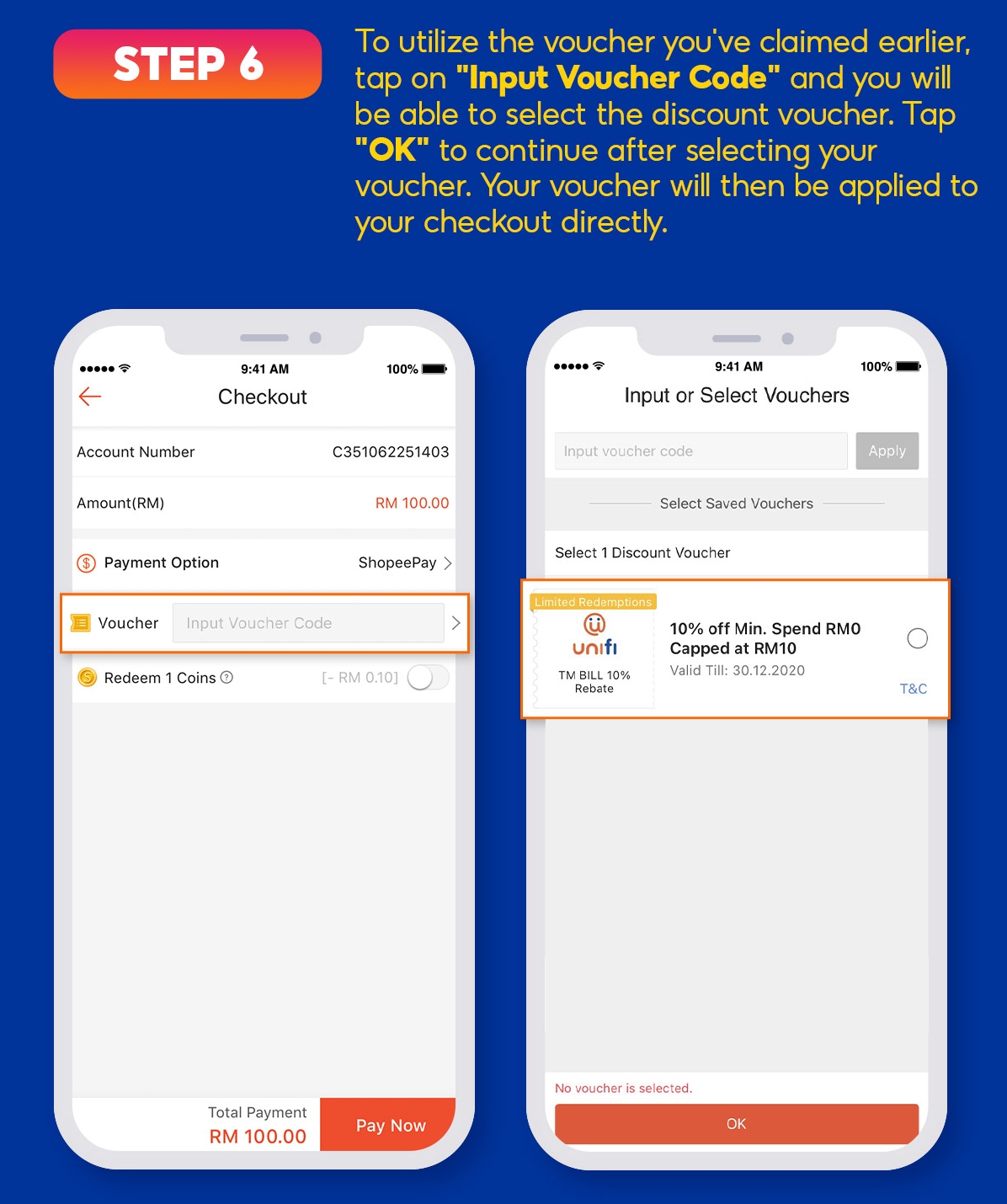 The Shopee x Unifi campaign is running for 7 days between 24th to 30th December 2020. To enjoy this rebate, you’ll need to claim a rebate voucher that’s limited to the first 200 users per day.