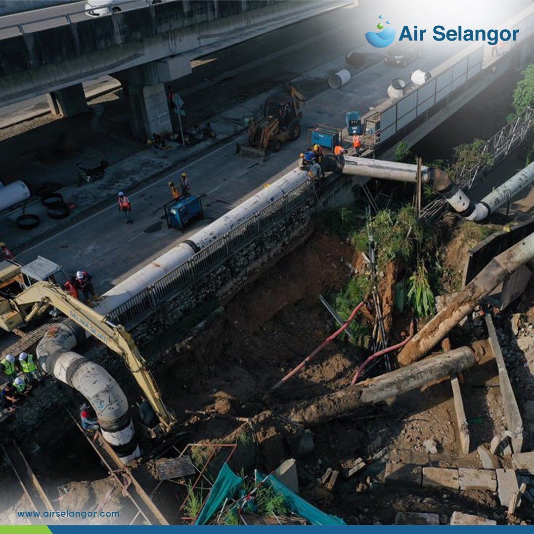 [ UPDATE 31/12/2020 16:15 ]: As of 1.30pm today (31st December), Air Selangor has updated that water supply is yet to be distributed as they are still in the final process of strengthening the slope and pipe structure of the temporary diversion pipe. The water works company apologises for the delay as the strengthening works are critical to ensure the stability of the diversion pipe. Air Selangor will provide further updates on the water supply recovery process on their official channels.