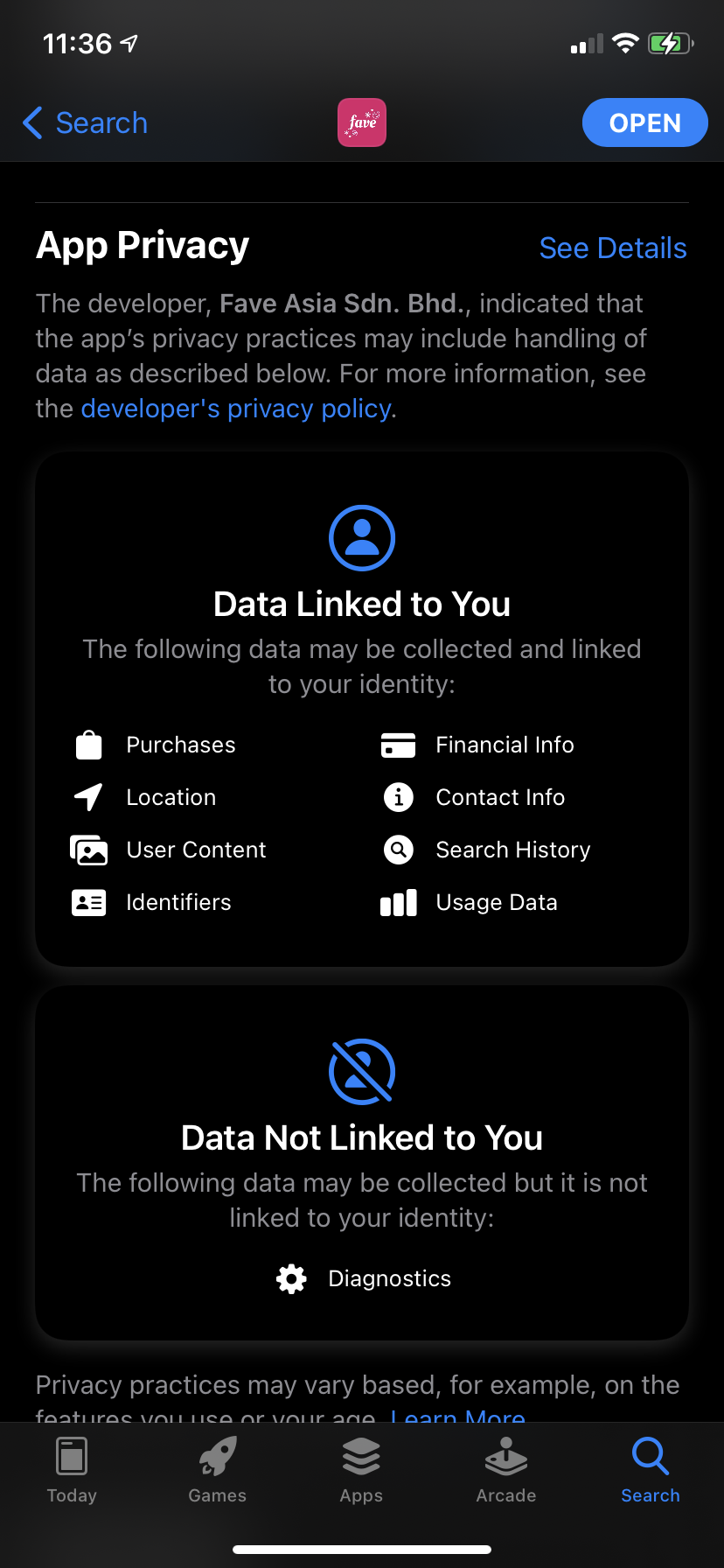 Some local apps like Maybank2u and MySejahtera have not yet provided their details. But local apps that are used a lot for things like eWallets like Fave, Grab and Touch ‘n Go eWallet all have their privacy details added.