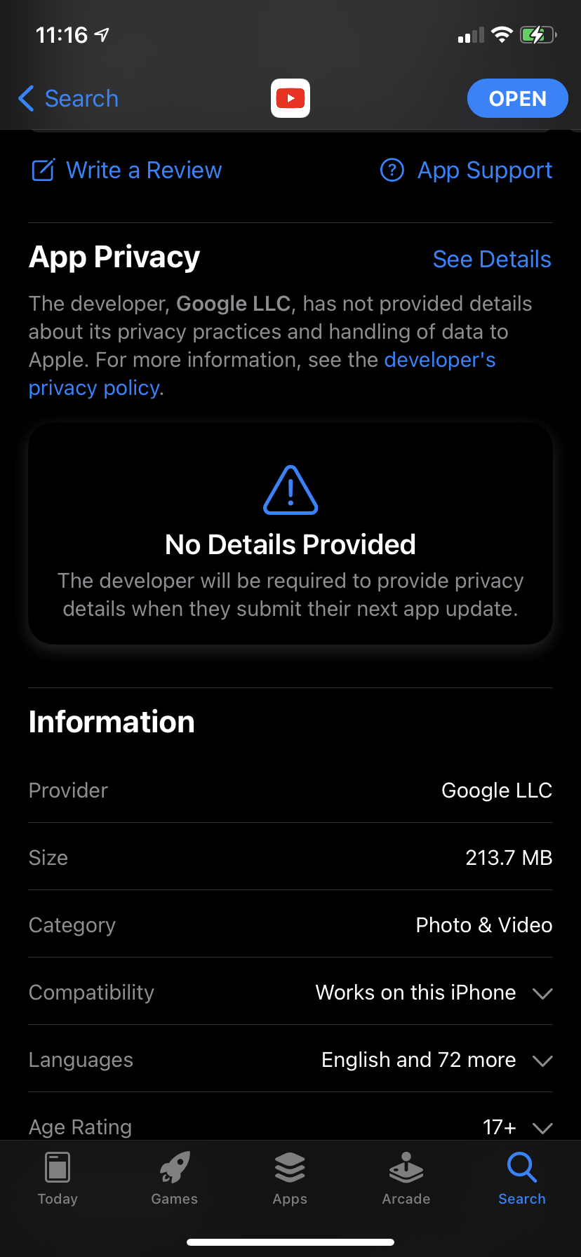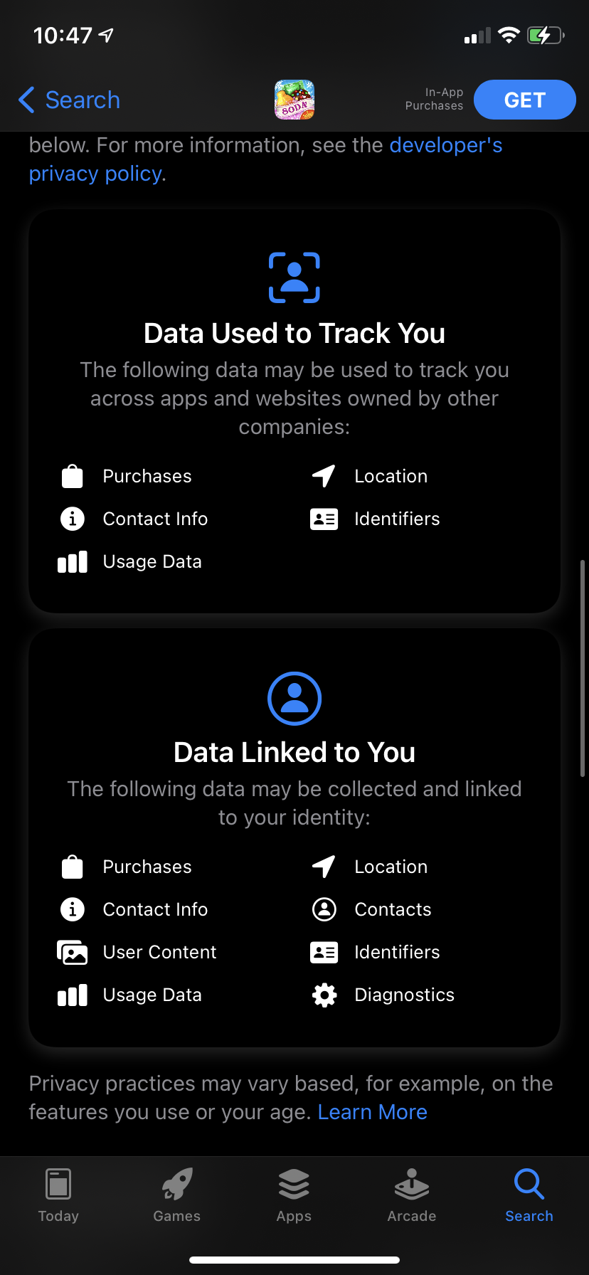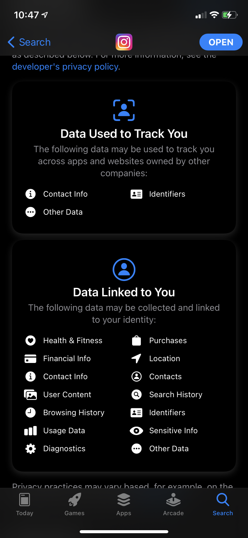 Other major apps like Instagram, Facebook and popular games like “Candy Crush” have updated their App privacy section. The information you can see includes what data of yours is used to track you, as well as other data linked to you that may be collected and linked.
