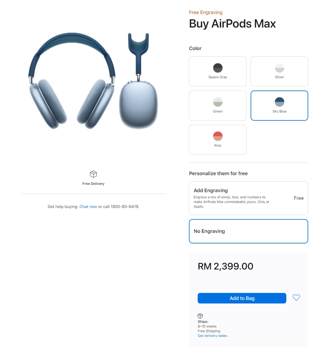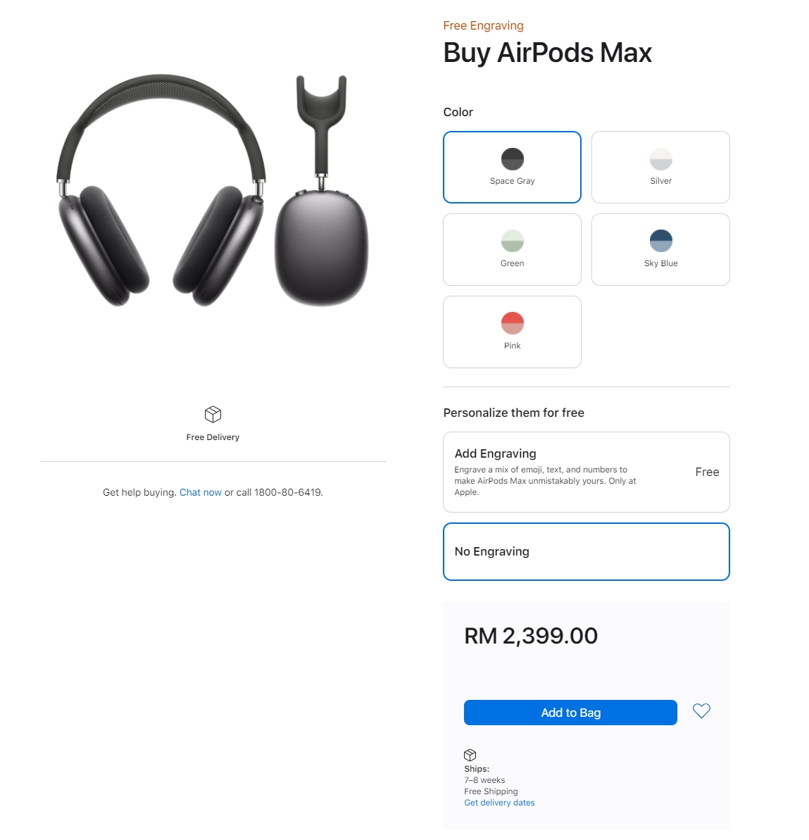 The AirPods Max official retails for RM2,399 in Malaysia and it comes in 5 different colours. At the time of writing, the Space Grey and Silver options are listed with an estimated shipping time of 7-8 weeks, while the other colourful options can take up to 10 weeks to ship.