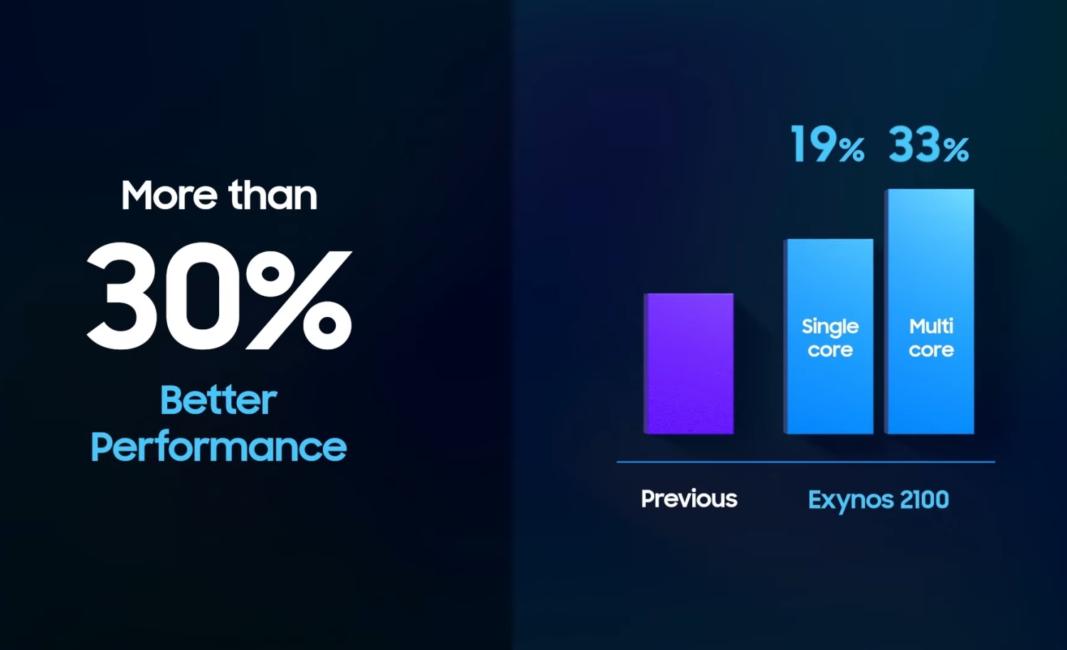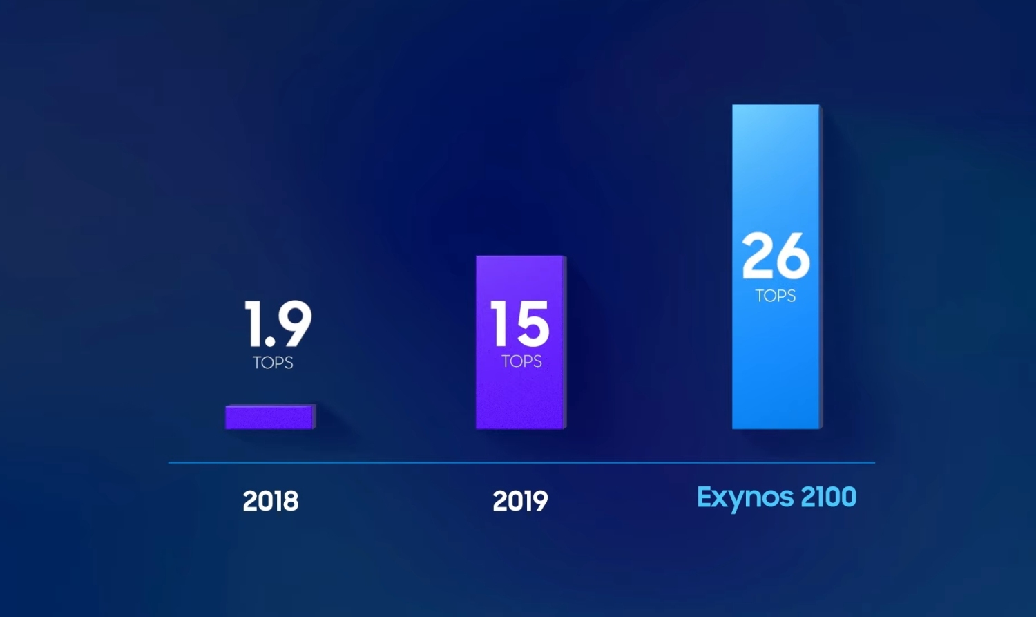 The new chip also features a tri-core Neural Processing Unit (NPU) which speeds up AI-oriented tasks. The Exynos 2100 is rated to push 26-trillion-operations-per-second (TOPS) which is said to be more than double of its previous generation.