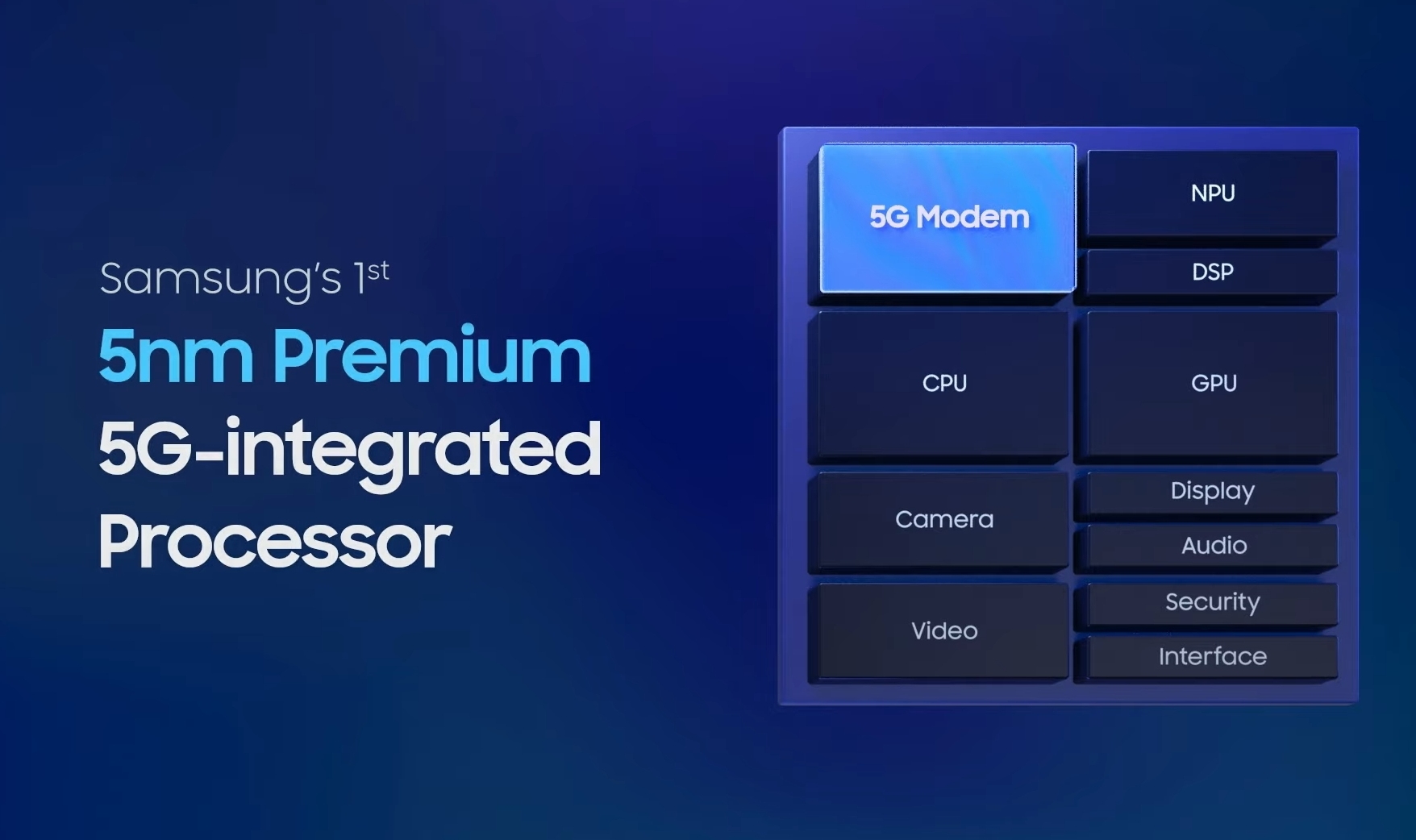 In terms of connectivity, this is Samsung’s first 5nm SoC with an integrated 5G modem. This implementation allows it to save space, cut costs and reduce power consumption. The 5G modem supports mmWave bands with speeds up to 7.35Gbps, as well sub-6GHz networks with speeds of up to 5.1Gbps. It is also rated to deliver 3Gbps speeds on 4G with 1024-QAM.