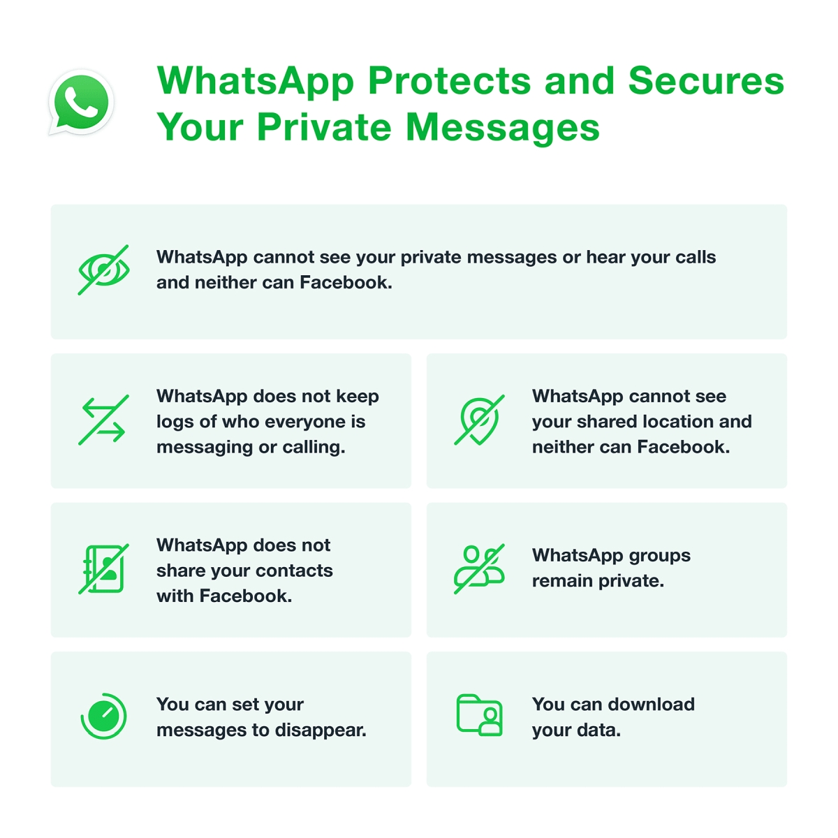 It clarifies that its continues to protect your personal conversations with end-to-end encryption so that neither WhatsApp nor Facebook will be able to see your messages. It also said they do not keep a log of everyone’s message and call history. On top of that, they can’t see your shared location and they do not share your contacts with Facebook.