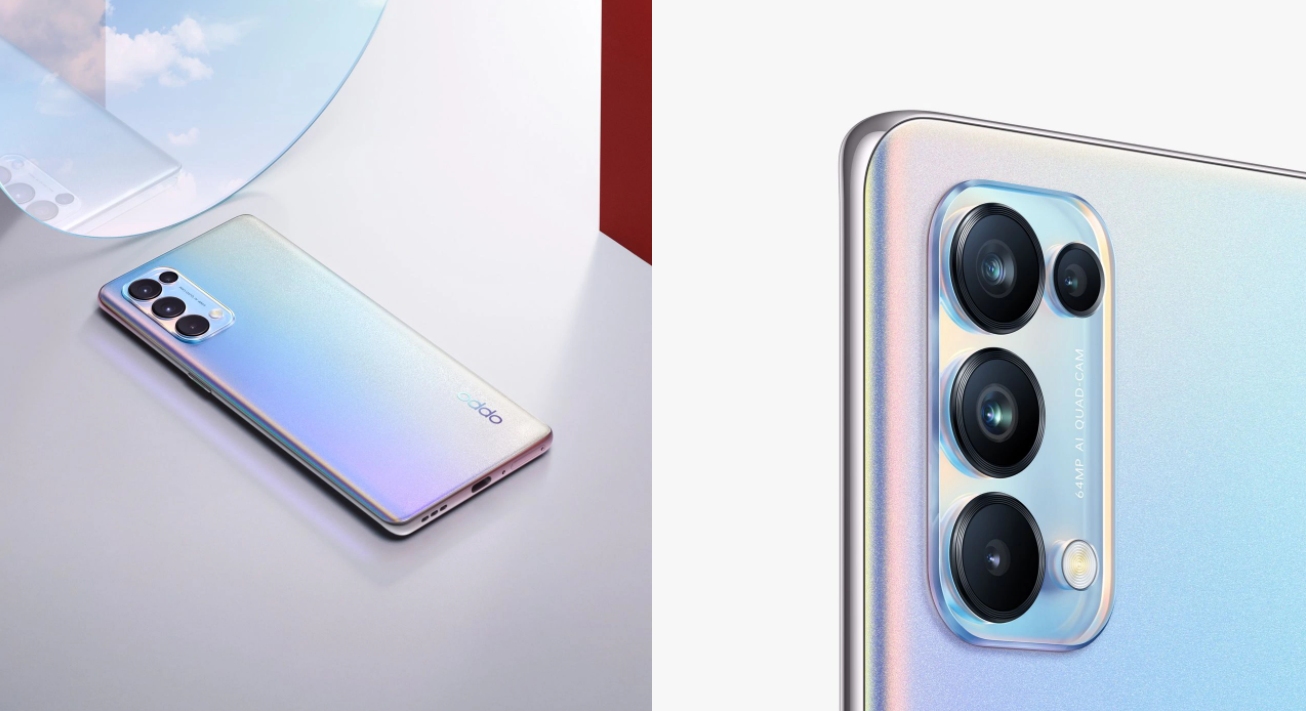 The standard Reno 5 looks like a rebadged OnePlus Nord but it comes with a couple of upgrades. Upfront, it features a 6.4″ Full HD+ AMOLED display that pushes a 90Hz refresh rate and a peak brightness of 750 nits. Powering the device is a 7nm Qualcomm Snapdragon 765G processor with 8GB of RAM and it has 128GB of storage which isn’t expandable.