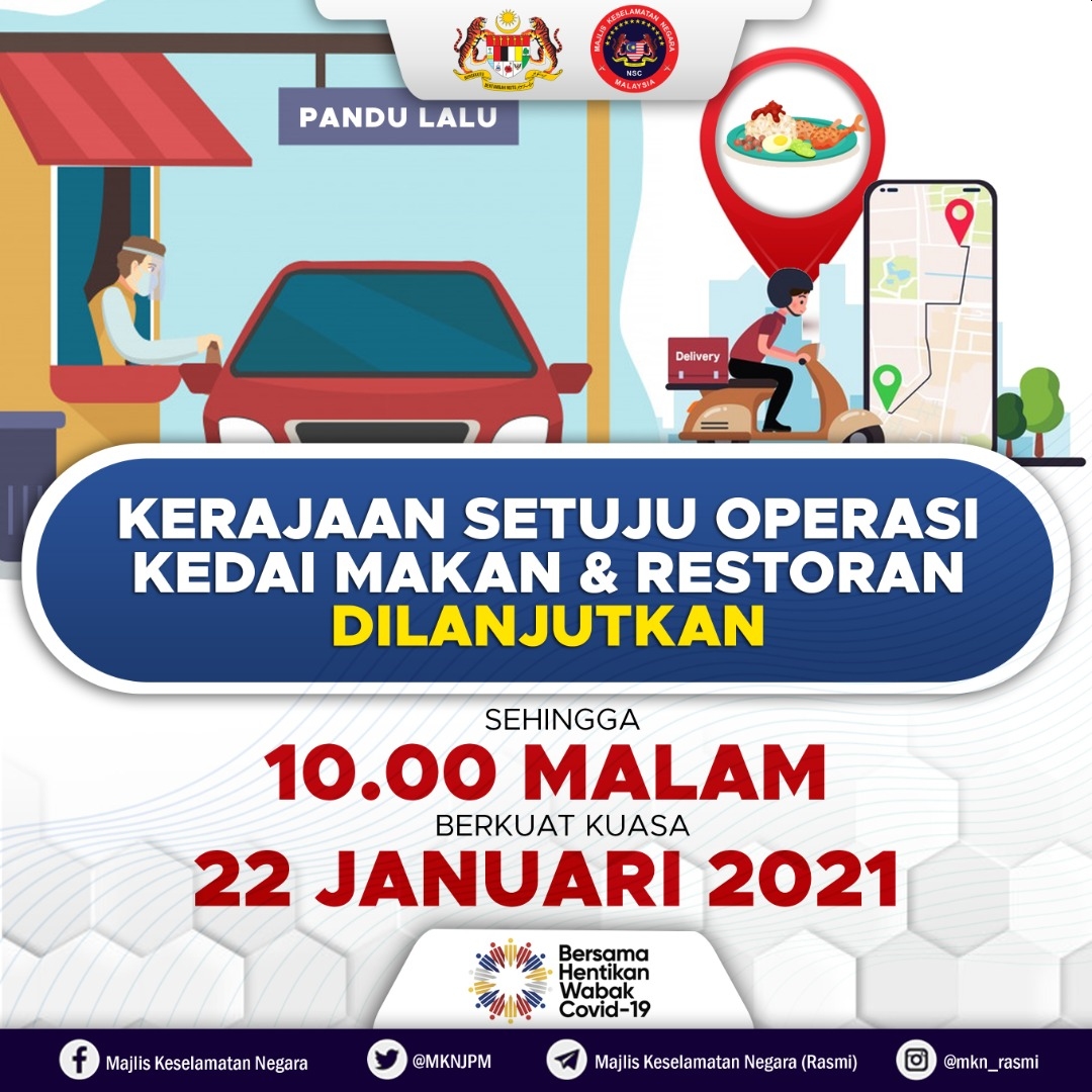 After calls were made to extend operating hours during the movement control order (MCO), the National Security Council has agreed to allow restaurants and eateries to open until 10pm. This new ruling will be enforced from tomorrow, 22nd January 2021.