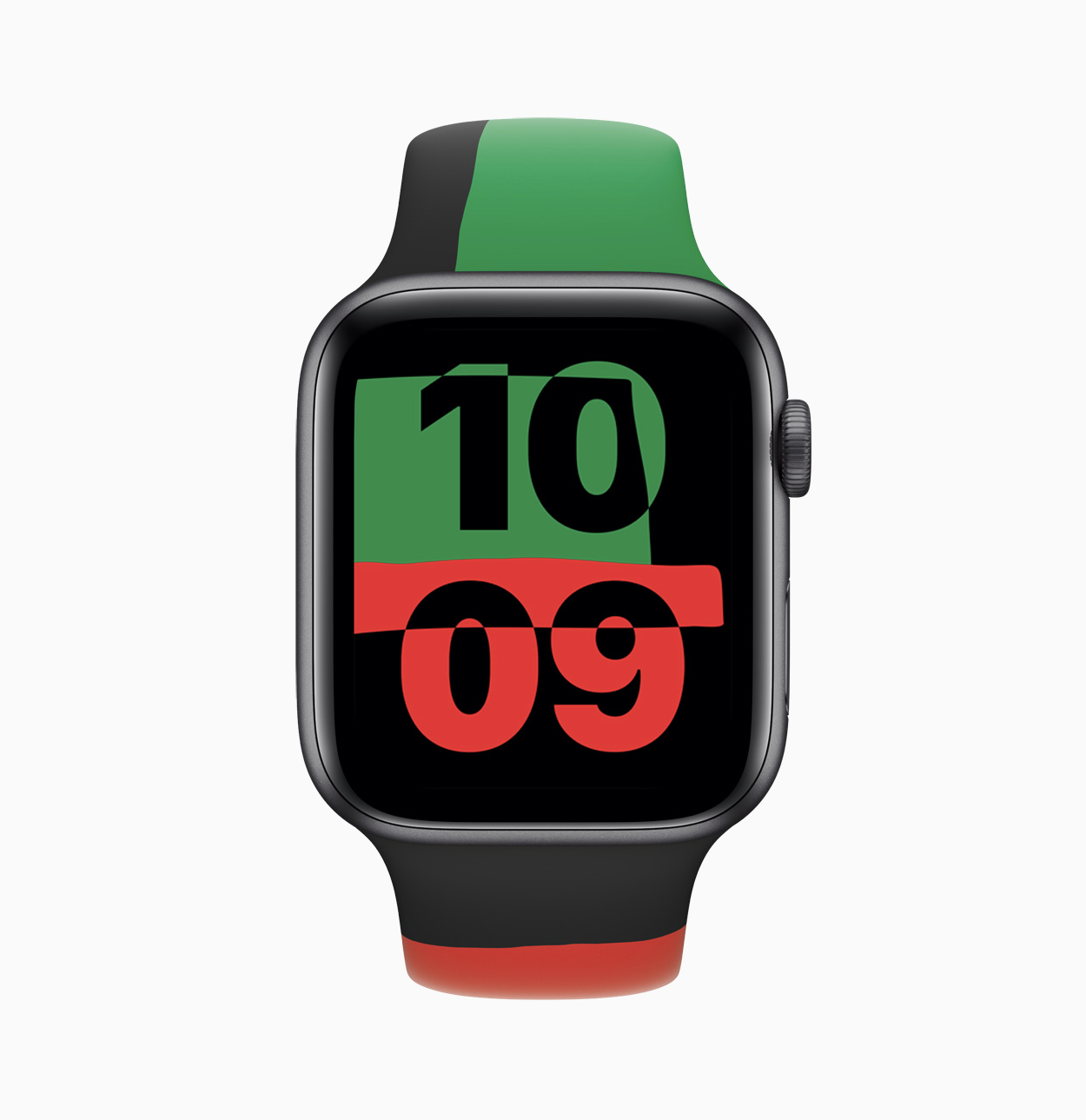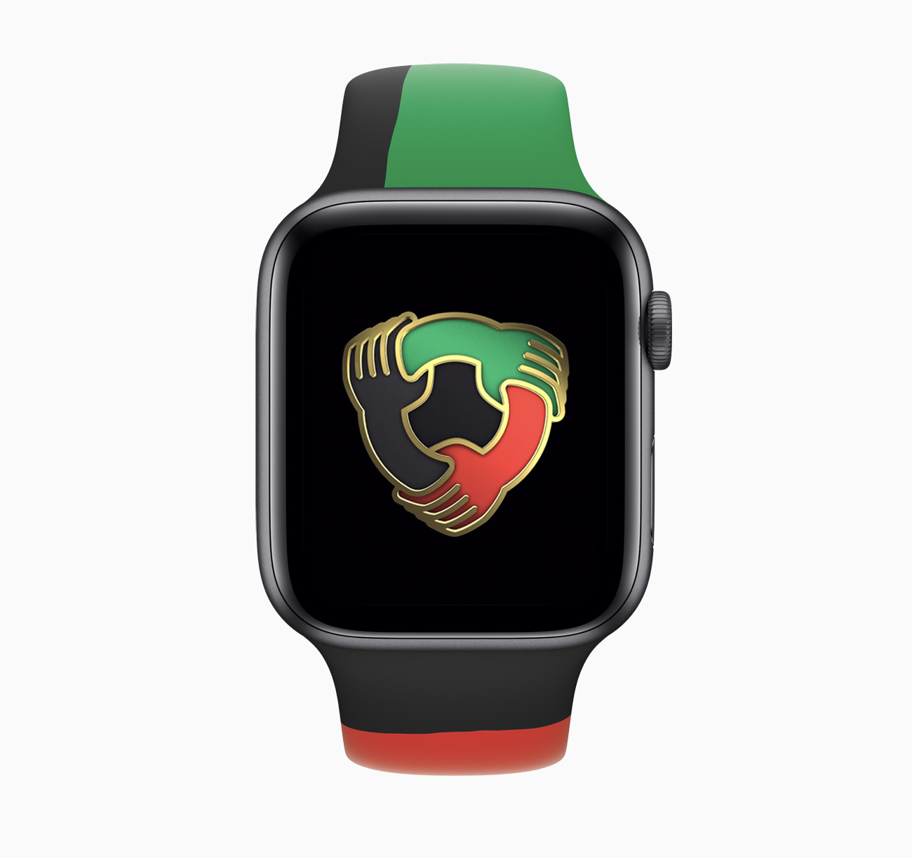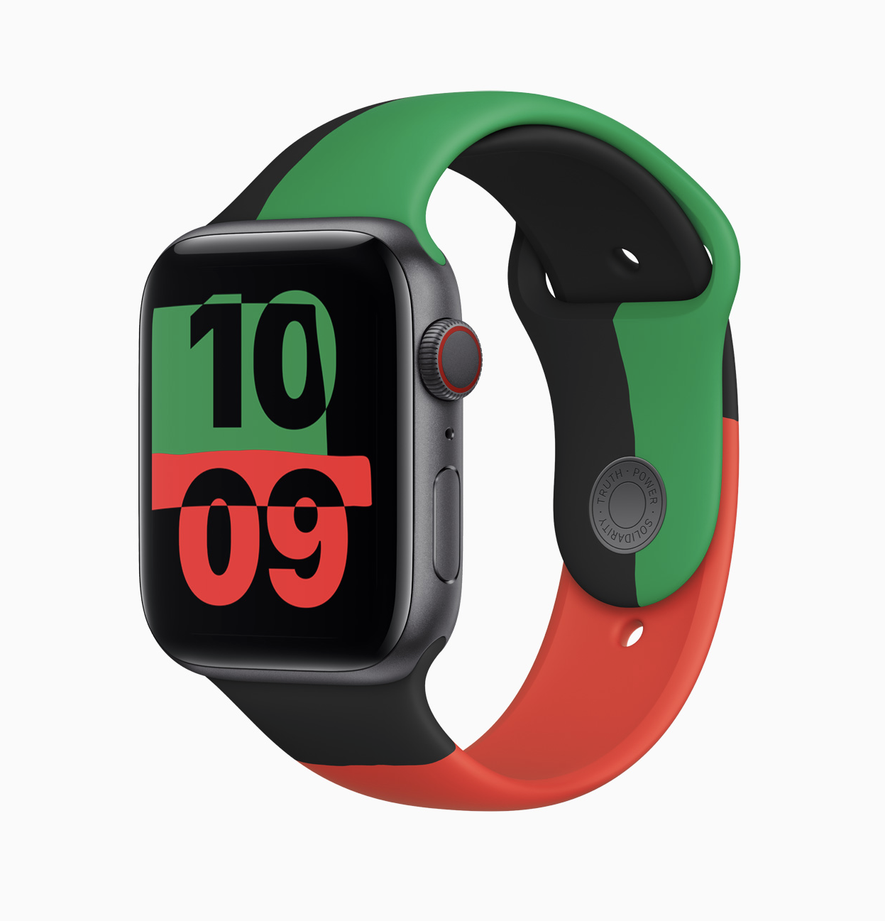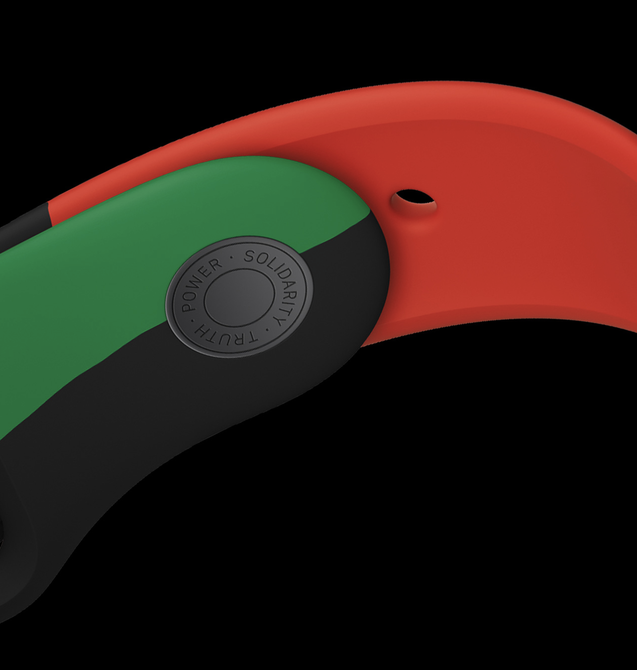 The Apple Watch comes with a black, green, and red striped band and face—meant to reflect the Pan-African flag. The “Black Unity Collection” also includes the Black Unity Sport Band, and a Unity watch face.