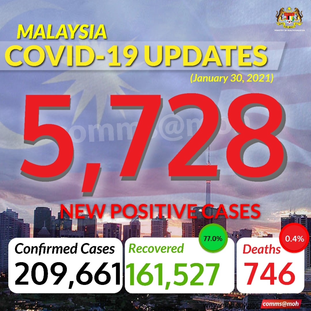 Malaysia has recorded 5,728 new COVID-19 cases today which brings the total number of infections to 209,661. Today marks another new record high beating yesterday’s 5,725 cases. There are 13 new deaths reported and the death toll is now 746.