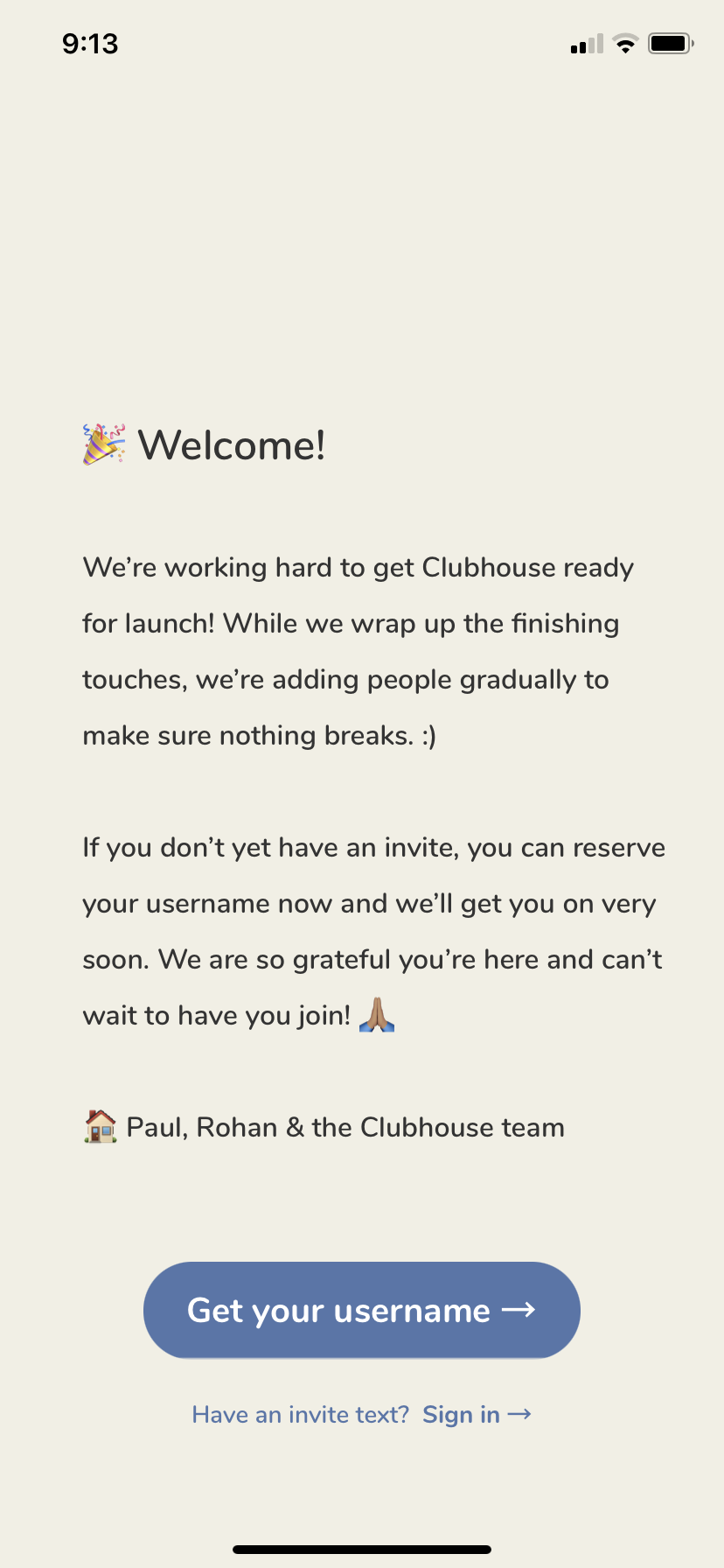 You’re only able to join Clubhouse if you’ve been invited. But if you haven’t, you can still “reserve your username” to put you on the waitlist. Along with your chosen username, you’ll also be asked to add your phone number.