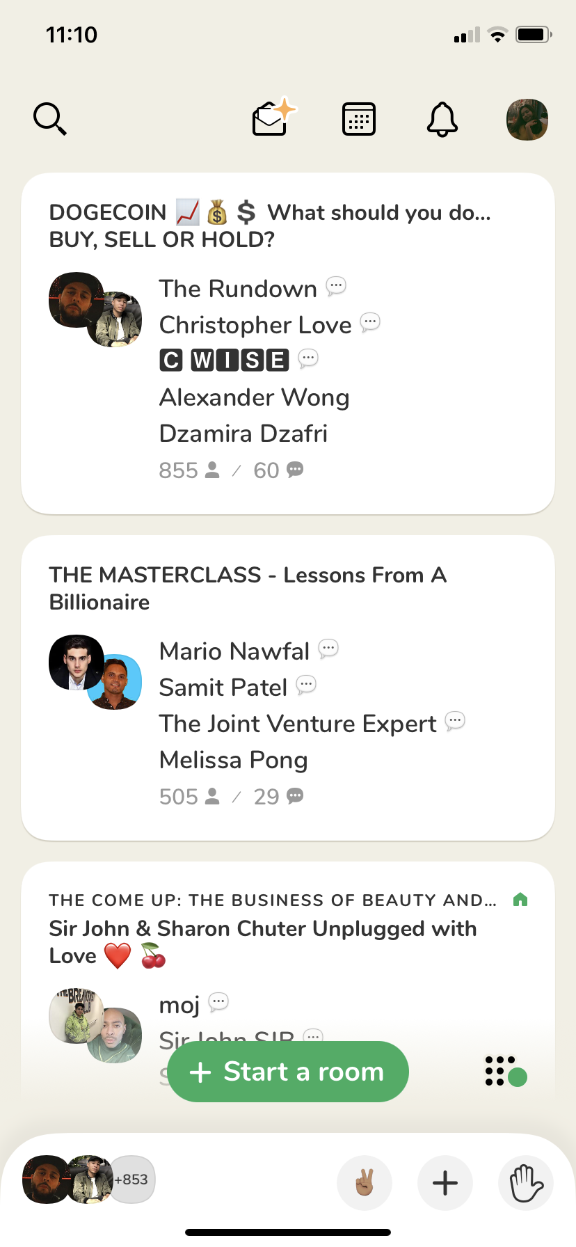 You’ll then be able to see several “rooms” based on your interests and what “rooms” your friends are attending. You can also “start a room”and add your friends in—it feels talking on a Discord server. The room can be open to everyone, just in your social circle, or it can be a closed group of just people you’ve invited.