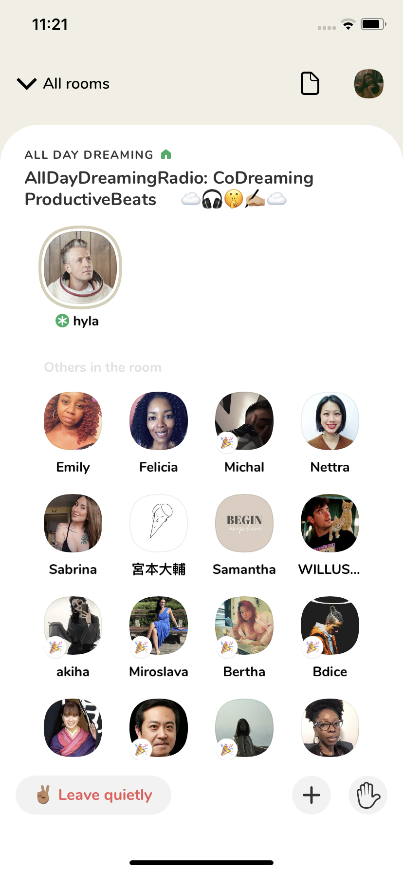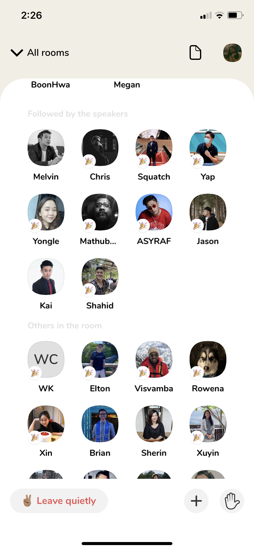 The rooms you can join can range between heavily moderated groups that will only let featured speakers talk, to more casual groups that you can talk to by “raising your hand” with the icon on the bottom right. You can also “leave quietly” option to… leave the room.