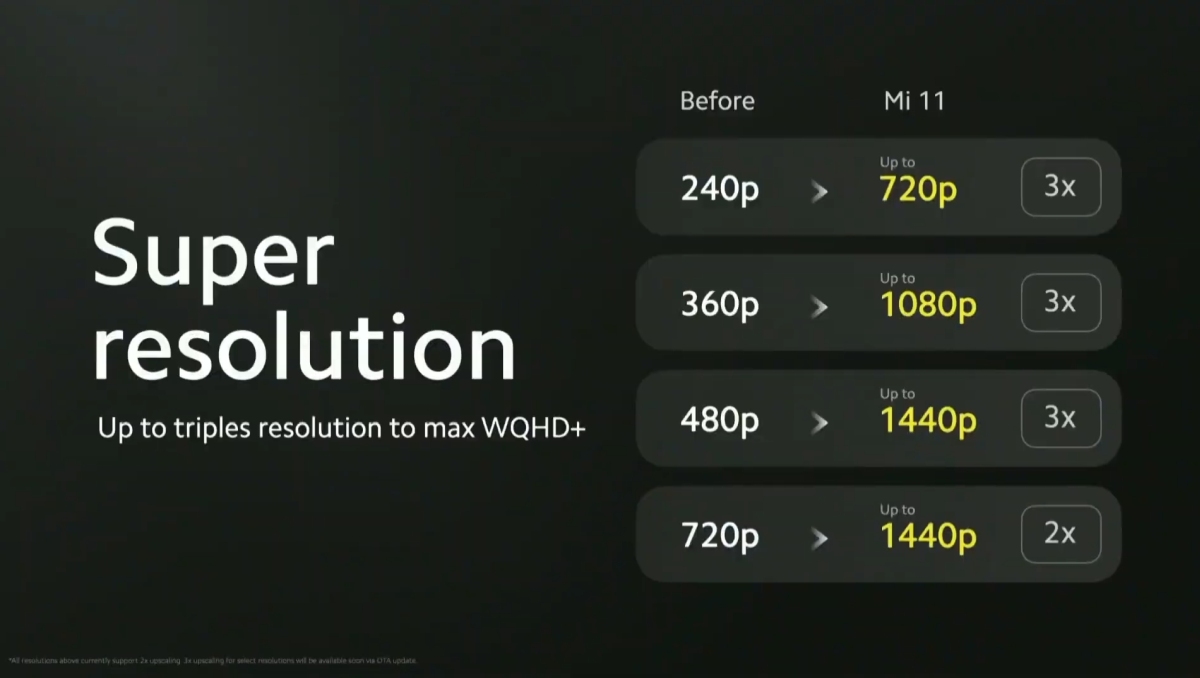 The Xiaomi Mi 11 features a 6.81″ “quad-curve” AMOLED display that boasts a high WQHD+ (3200×1440 pixels) resolution, 1500 nits brightness and 5,000,000:1 contrast ratio. In addition, it also boasts a Super resolution feature that can bump up a low resolution 480p image to 1440p and HDR10+ plus 10-bit colour support.