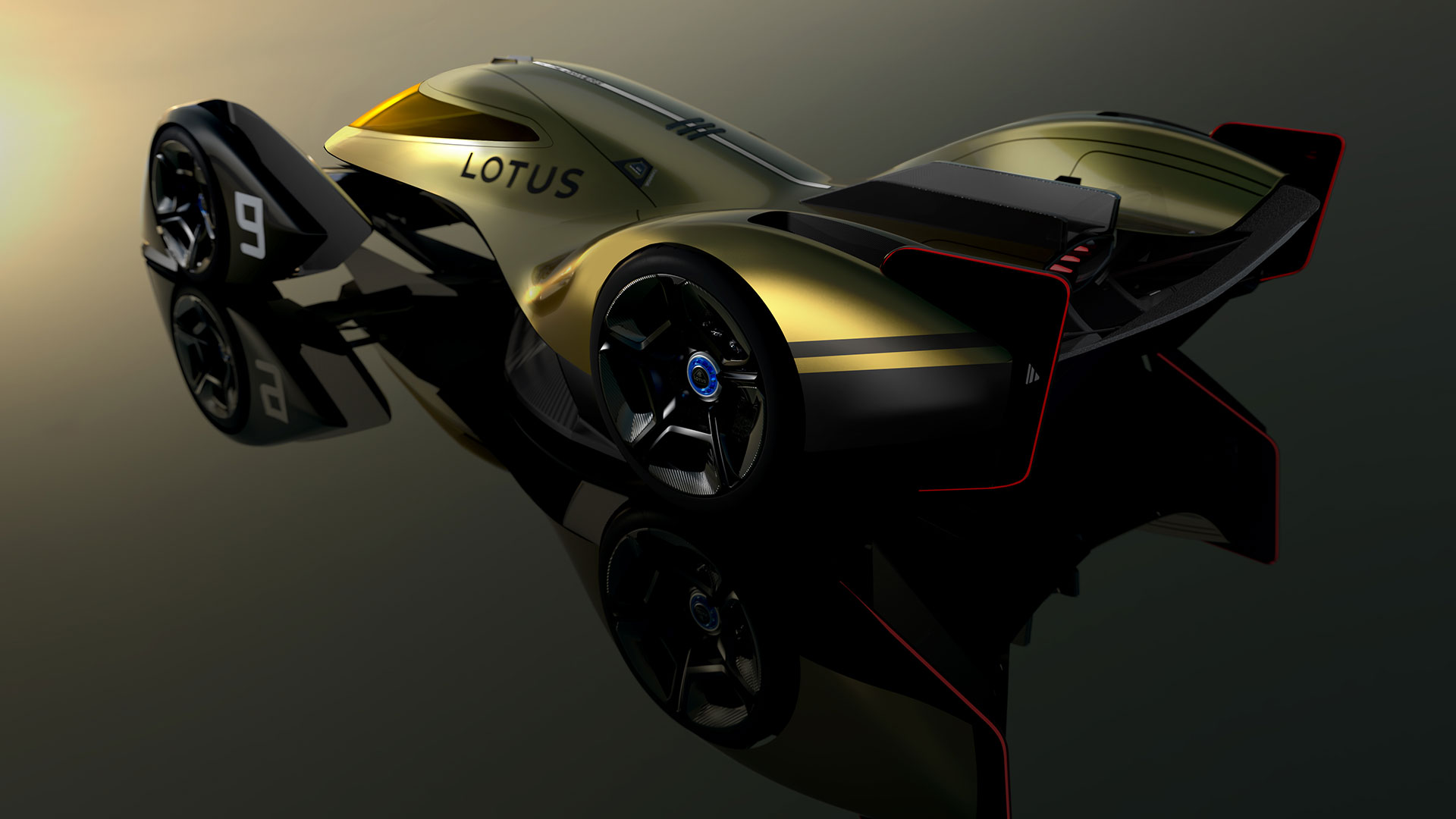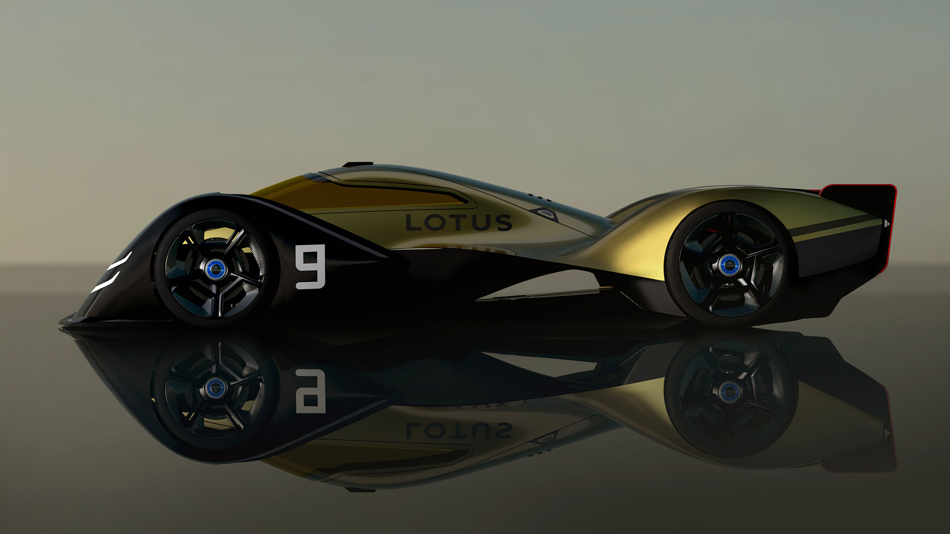 The renders show the E-R9 decked in a stunning black and gold finish, a nod to Lotus’ traditional colours from its Formula 1 race days.