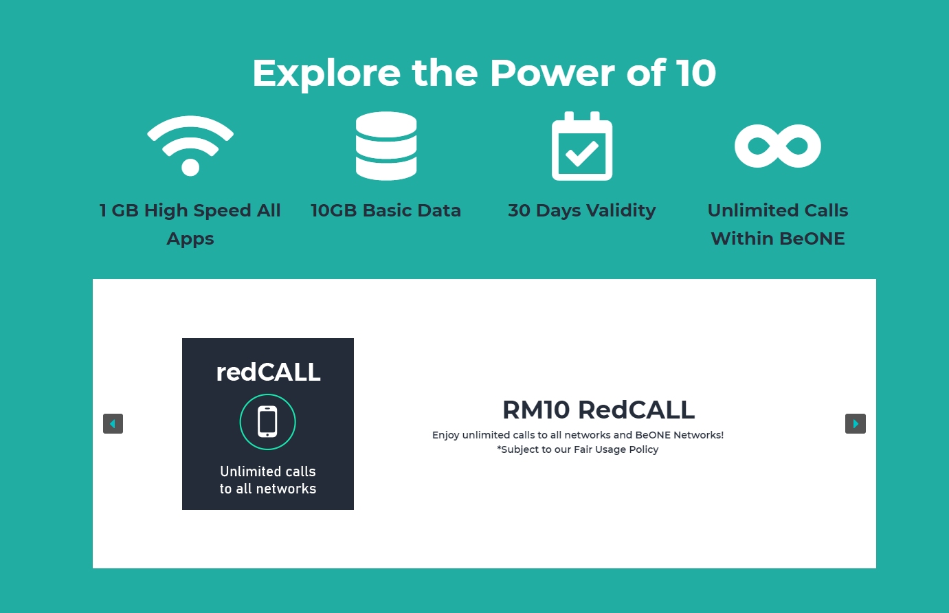 BeOne Prepaid is a new service that’s launched in partnership with RedOne Network Sdn Bhd, a Mobile Virtual Network Operator (MVNO) which uses Celcom’s network. For those who are looking for a lower monthly commitment plan, BeOne Prepaid is offering 1GB of high-speed data, 10GB of basic internet and free unlimited calls within the BeOne network for only RM10/month.