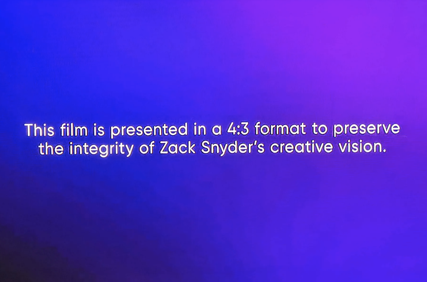 “This film is presented in a 4:3 format to preserve the integrity of Zack Snyder’s creative vision,” wrote HBO before showing the Snyder cut to viewers.