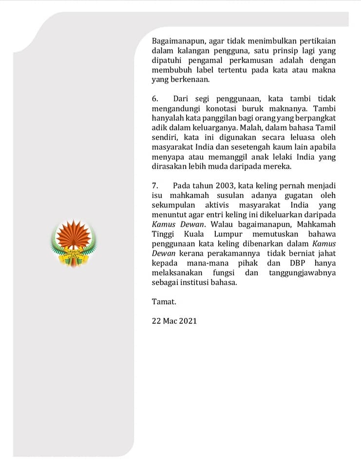 Social media was abuzz after Dewan Bahasa dan Pustaka (DBP) used the derogatory term, “keling” to refer to the Indian community on its website recently.
