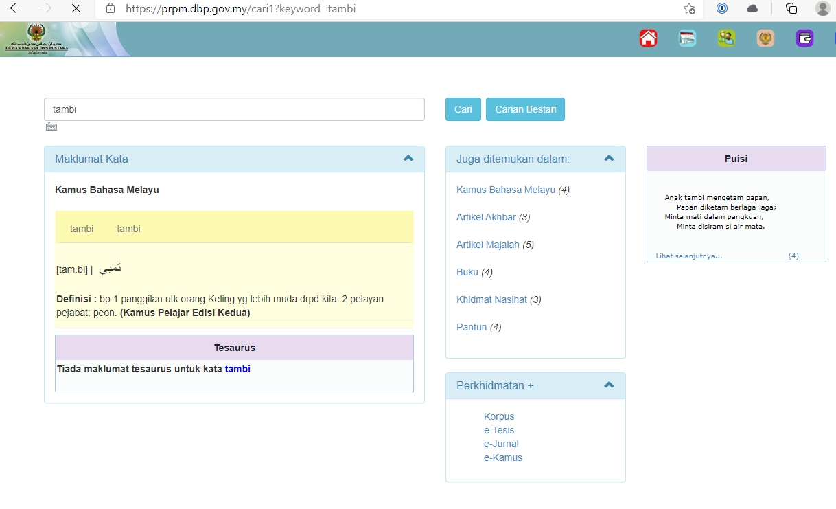 DBP defined the word ‘tambi’ as: “a term used for Keling people younger than us.”