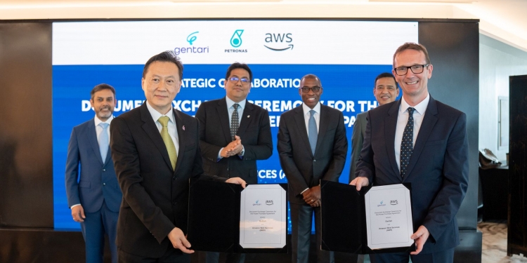 The document exchange was witnessed by Tengku Muhammad Taufik, Chairman of Gentari and President & Group CEO of Petronas; Sushil Purohit, CEO of Gentari; Uwem Ukpong, Vice President of Global Services at AWS; and Ir Ts Mohd Yusri Mohamed Yusof, Senior Vice President of Projects, Technology and Health, Safety, Security & Environment at Petronas.