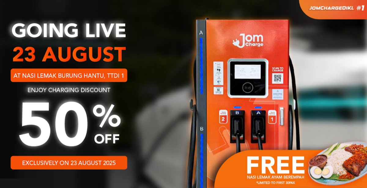 To celebrate the occasion, EV Connection (EVC) is offering a 50% discount on the charging fee at JomCharge Nasi Lemak Burung Hantu TTDI on 23 August. At the same time, the first 30 customers will also receive a complimentary Nasi Lemak Ayam Berempah from the renowned Nasi Lemak establishment.