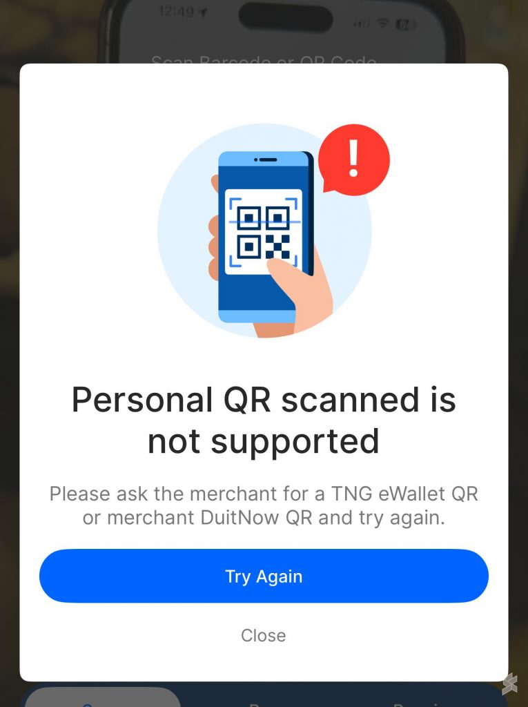 However, TNG eWallet still doesn’t support personal DuitNow QR codes from users on other banking platforms. It only works with personal DuitNow QR codes generated by TNG eWallet or DuitNow QR merchant accounts.