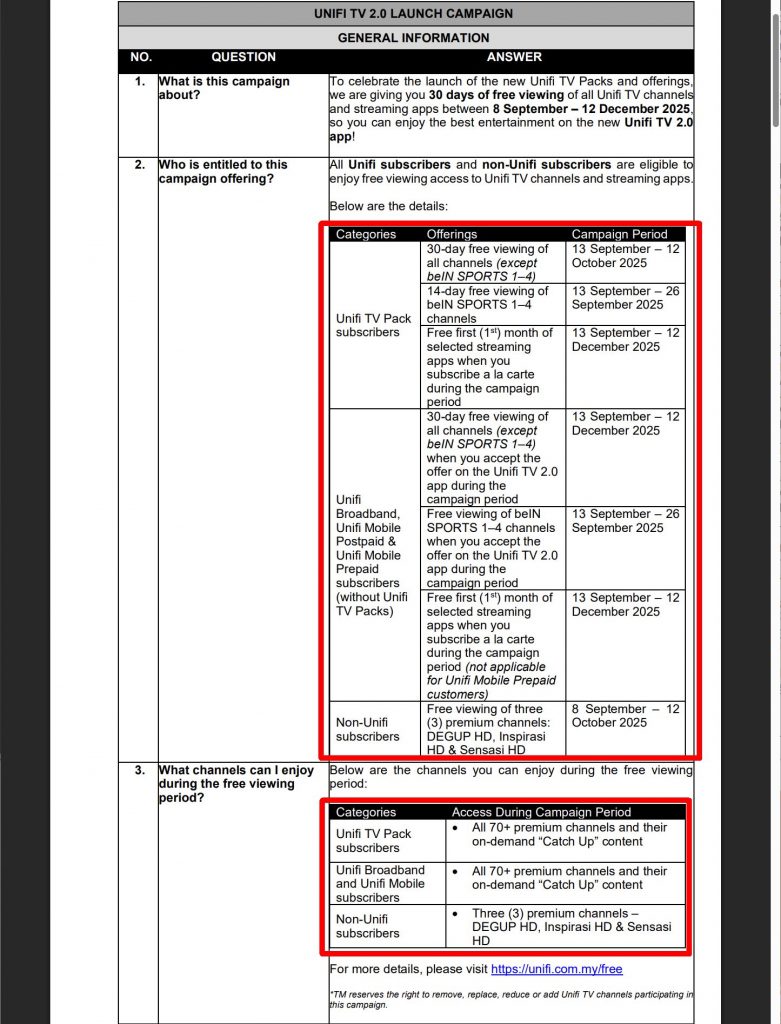 Besides the free 30-day complimentary access offer, Unifi TV Pack subscribers can enjoy a special promo pricing from 13th September to 12th December 2025.