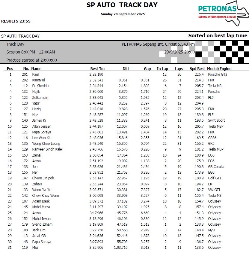 It has to be said though, that lap times at Sepang are never just about the car. The driver makes the difference. On this night Ee’s pace and confidence delivered, which is why the Tesla ended up mixing with established track machinery. The comparison is context, not proof that the cars have suddenly swapped places.