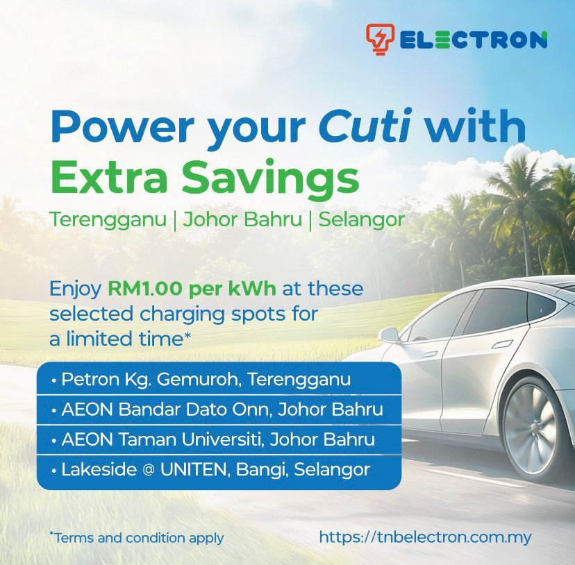 According to TNB Electron, the RM1 per kWh promo for EV charging is running from 25th December 2025 until 24th January 2026.