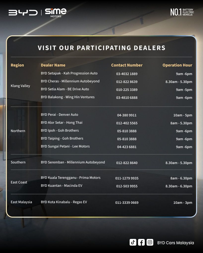 Meanwhile, in East Malaysia, the free charging offer is available only at BYD Kota Kinabalu (Regas EV).