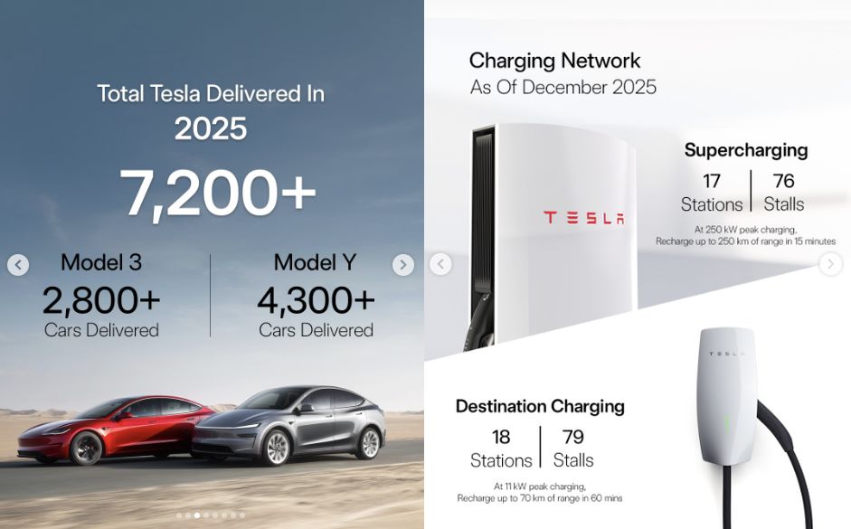 [ UPDATE 31/12/2025 16:35 ] Tesla Malaysia has updated that it has delivered over 7,200 EVs, consisting of over 2,800 Model 3 and over 4,300 Model Y.
